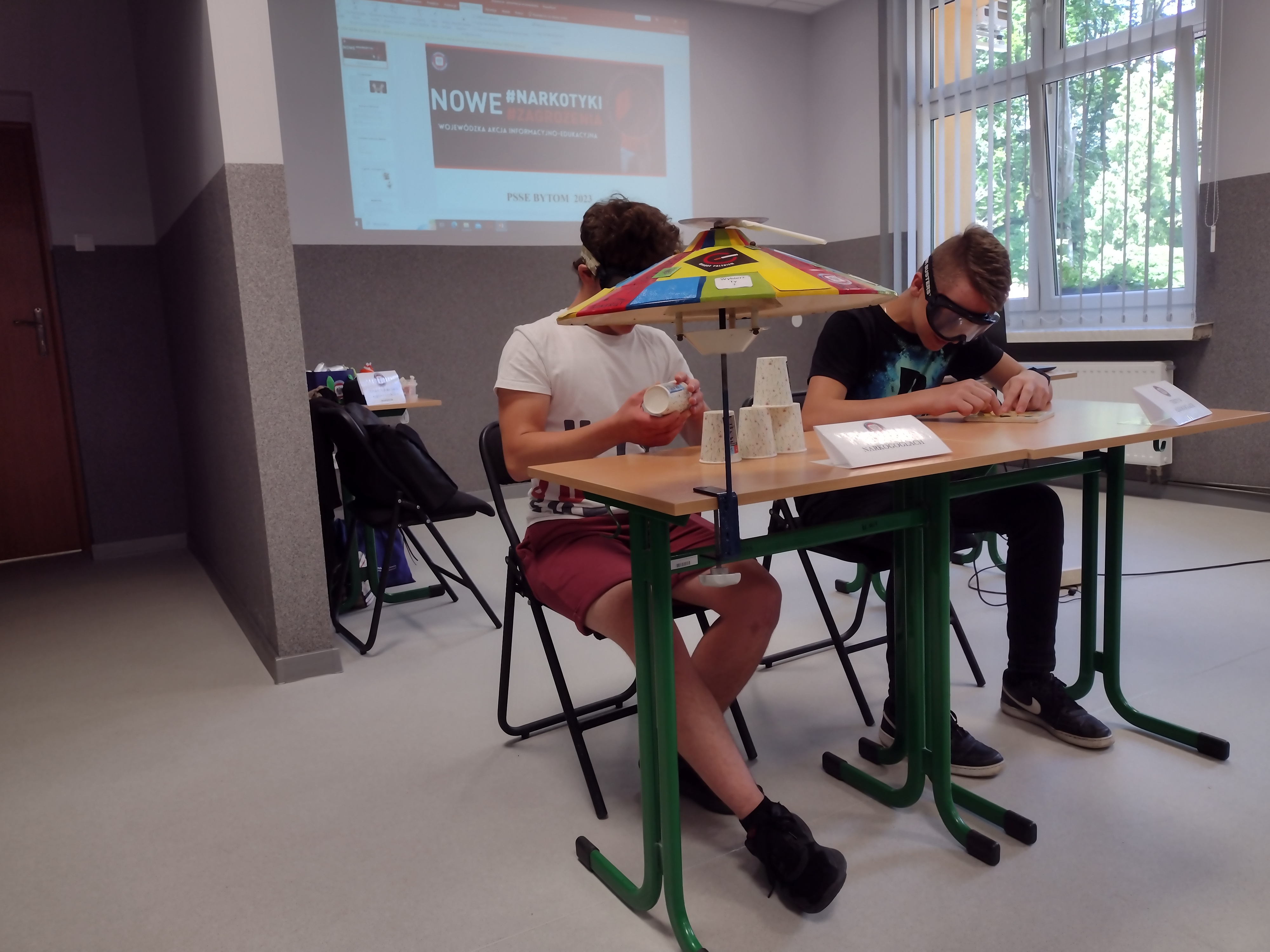W ramach trwającej wojewódzkiej akcji informacyjno-edukacyjnej „Nowe narkotyki - Nowe zagrożenia”, w dniu 12.06.2023 r. pracownicy Sekcji Oświaty Zdrowotnej Powiatowej Stacji Sanitarno Epidemiologicznej w Bytomiu przeprowadzili warsztaty profilaktyczne dla uczniów Zespołu Szkół Centrum Kształcenia Rolniczego w Nakle Śląskim. Głównym celem zajęć było przedstawienie i przypomnienie podstawowych informacji nt. uzależnień, zagrożeń wynikających z zażywania substancji psychoaktywnych a w konsekwencji zwiększenia ostrożności, zmniejszającej otwartość na kontakty z tymi produktami. Zainteresowane osoby miały możliwość sprawdzenia jak zachowuje się organizm po alkoholu i narkotykach poprzez przeprowadzenie prostych zadań w okularach typu alko i narkogogle. Osoby chętne palące papierosy miały, możliwość wykonania pomiarów stężenia tlenku węgla w wydychanym powietrzu a jednocześnie zachęcano ich do zerwania z nałogiem. Na zakończenie zajęć, w celu utrwalenia wiedzy, przygotowano quiz pn. „koło wiedzy”, podczas którego uczniowie odpowiadali na wylosowane pytania. Zajęcia spotkały się z dużym zainteresowaniem wśród młodzieży, która aktywnie angażowała się i uczestniczyła w przygotowanych zadaniach.