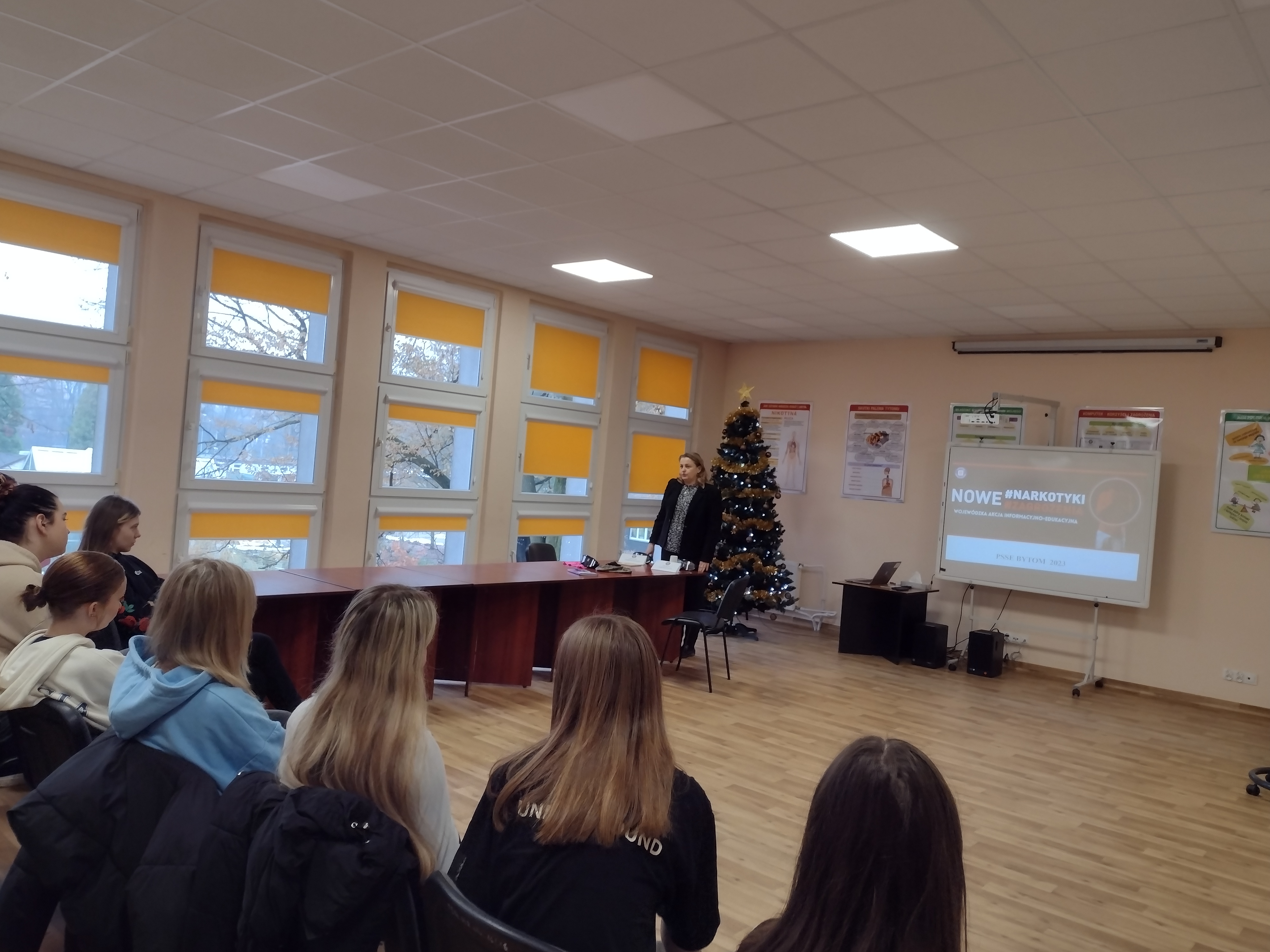 W dniu 13.12.2023 r. przeprowadzono warsztaty nt. profilaktyki uzależnień dla uczniów w Centrum Przeciwdziałania Uzależnieniom w Bytomiu w ramach zawartej koalicji lokalnej. Podczas spotkania przedstawiono problemy zdrowotne i zagrożenia wynikające z zażywania środków psychoaktywnych i napojów energetycznych. Uczniowie angażowali się w zajęcia, chętnie wykonali przygotowane zadania w alkogoglach i narkogoglach symulatorach zażywania środków psychoaktywnych.