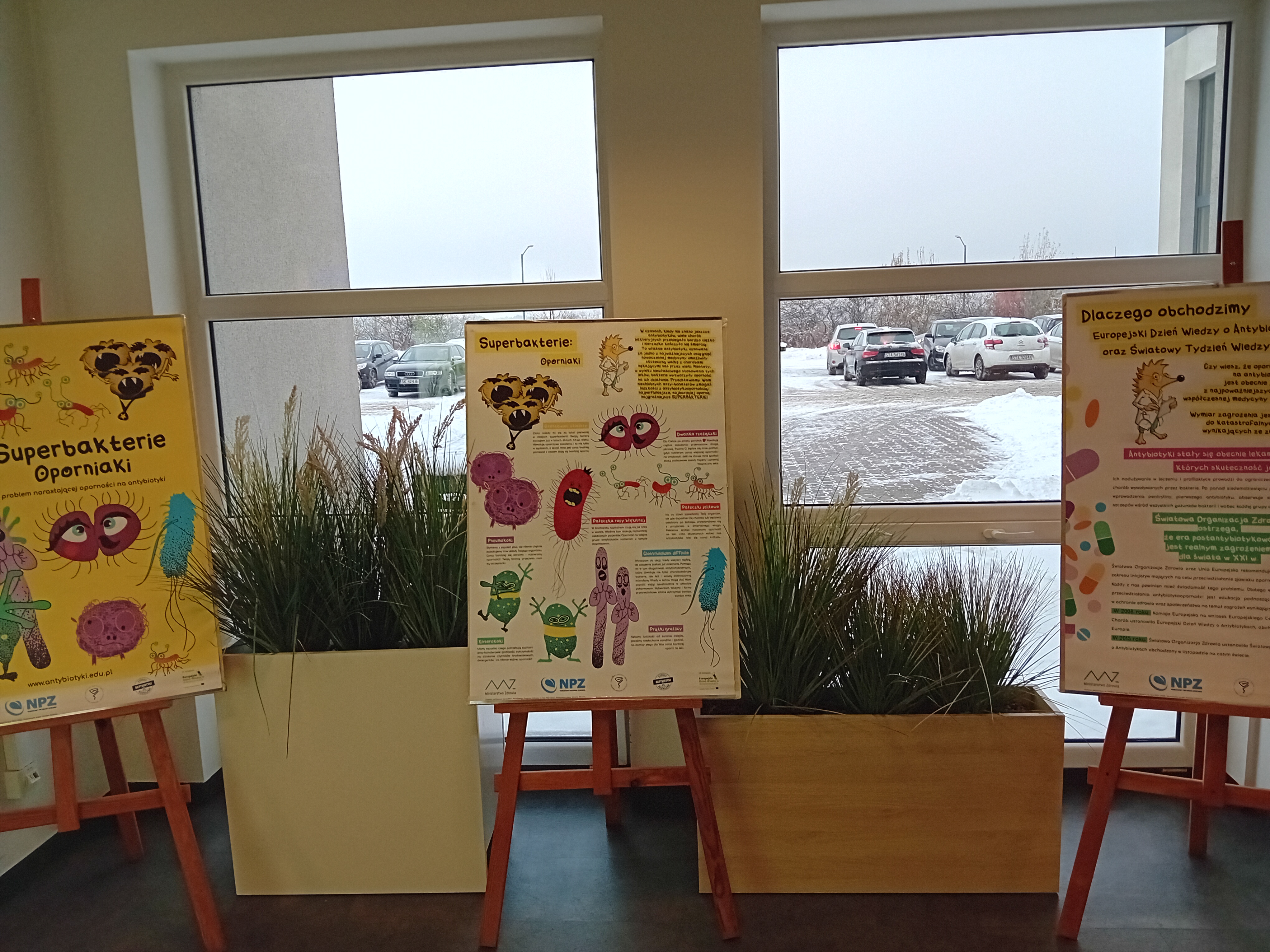 W Centrum Medycznym Gabos w Piekarach Śląskich, od 29.11-08.12.2023 zorganizowano wystawę antybiotykową pt. „Superbakterie Oporniaki” składającą się z 8 plansz tematycznych pokazujących jak zapobiegać antybiotykooporności, jak prawidłowo stosować antybiotyki oraz w jaki sposób naturalnie dbać o odporność.
