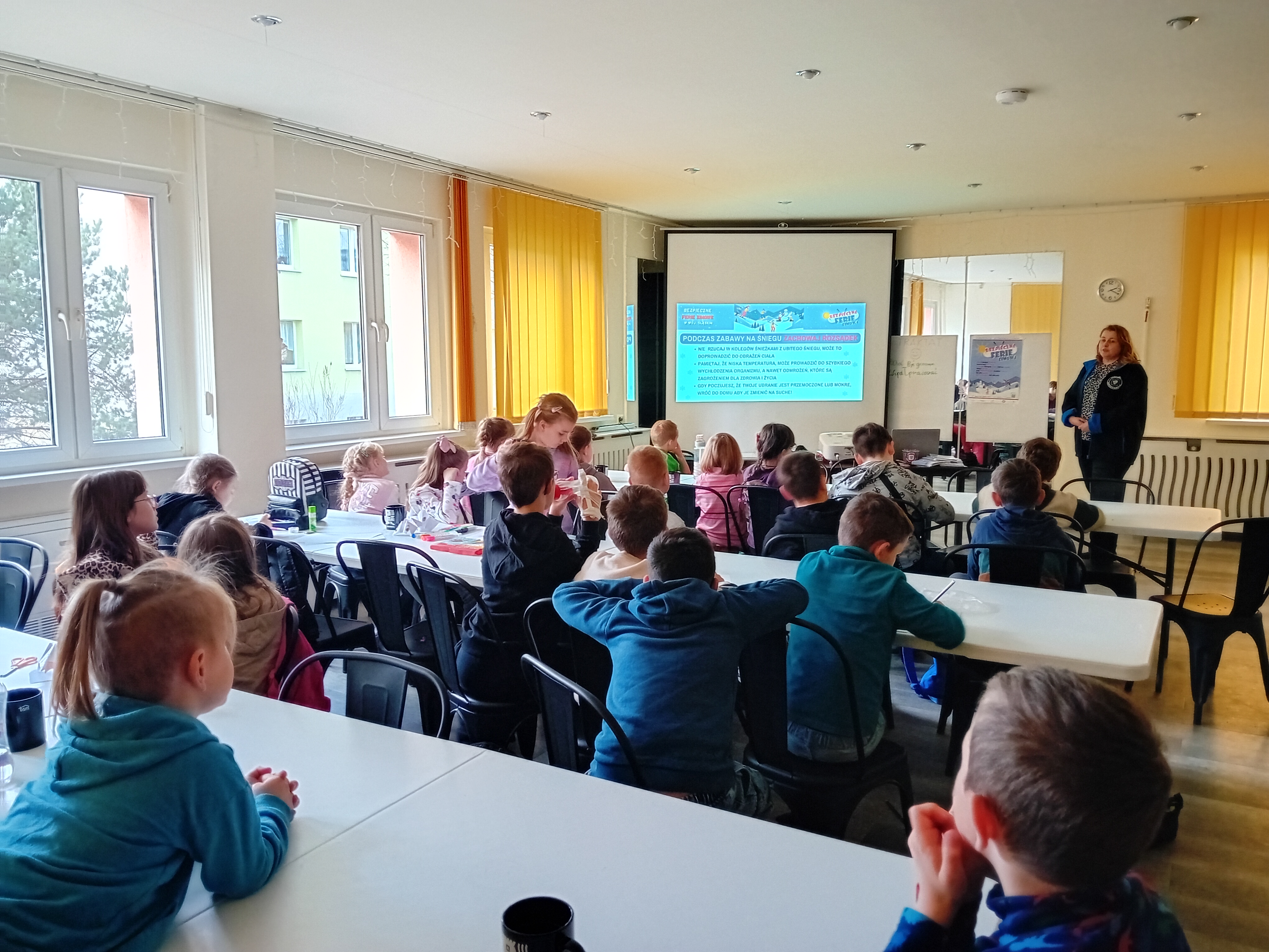 W dniu 28.02.2025 r. przeprowadzono zajęcia edukacyjne dla dzieci uczestniczących w półkoloniach zorganizowanych przez Spółdzielczy Klub „Relaks” w Bytomiu. Podczas spotkania omówiono podstawowe zasady bezpiecznego spędzania czasu wolnego, numery alarmowe oraz jak dbać o higienę. Każdy otrzymał zakładkę #Wybierz zdrowie. Dodatkowo uczestnicy półkolonii za aktywny udział w zajęciach ruchowych „Ścieżce zdrowia” zakończonej quizem wiedzy otrzymali w nagrodę książeczkę pt. „Bezpieczne ferie”.