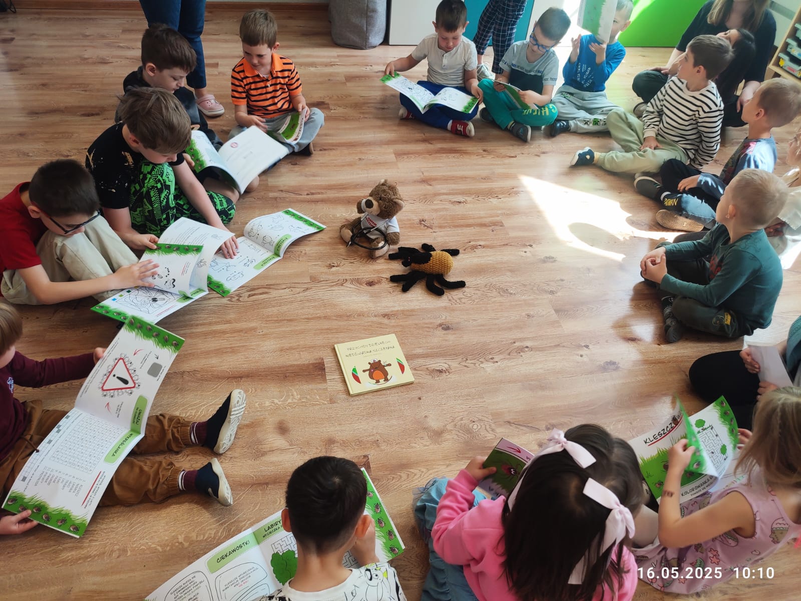 16 maja br. pracownik Powiatowej Stacji Sanitarno-Epidemiologicznej w Bytomiu przeprowadził zajęcia edukacyjne w Niepublicznym Przedszkolu Muzyczno-Językowym z Oddziałami Integracyjnymi „Twórcza Chatka” w Tarnowskich Górach. Rozmawiano z dziećmi na temat zdrowego stylu życia, profilaktyki chorób zakaźnych oraz higieny osobistej, w tym o prawidłowym myciu rąk. Ważną częścią spotkania było omówienie zagadnienia dot. profilaktyki chorób odkleszczowych, sposobu wyciągania kleszczy oraz prezentacja kleszczy w probówkach.