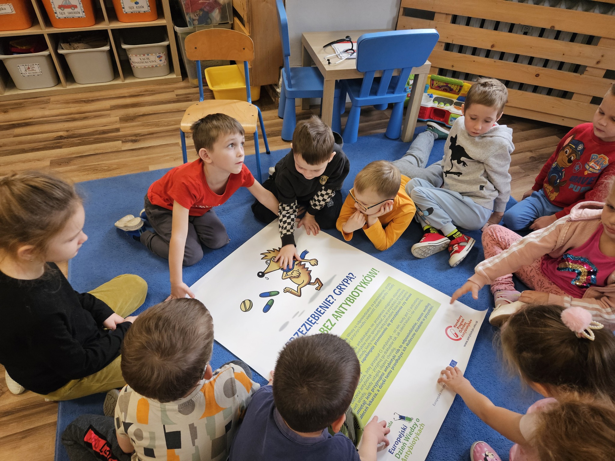 W dniu 14 listopada br. pracownik Powiatowej Stacji Sanitarno-Epidemiologicznej w Bytomiu przeprowadził zajęcia edukacyjne dla dzieci z Przedszkola Miejskiego Integracyjnego nr 8 w Bytomiu. W związku ze zbliżającym się Europejskim Dniem Wiedzy o Antybiotykach rozmawiano z dziećmi na temat wirusów, bakterii, profilaktyki chorób zakaźnych oraz higieny osobistej, w tym o prawidłowym myciu rąk. Na zakończenie zajęć dzieci wysłuchały bajki profilaktycznej pt. „Przygody dzielnego niedźwiadka Szczepana”.