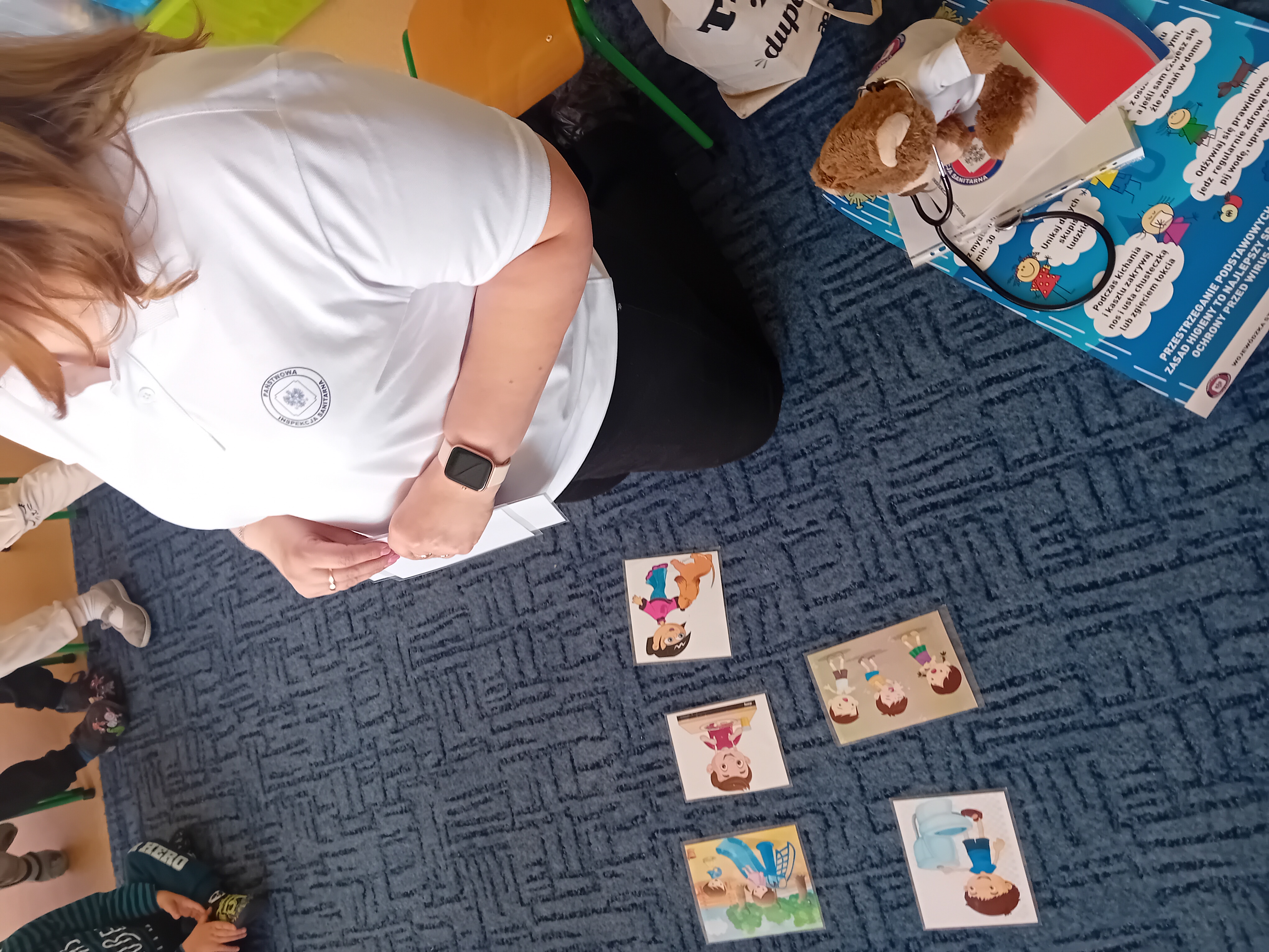 W związku z realizacją wojewódzkiej akcji „Wirusoochrona” i projektu „Klub zdrowego przedszkolaka” przeprowadzono w dniu 29 stycznia br. zajęcia profilaktyczne dla dzieci z Przedszkola Miejskiego nr 49 „Witaminka” w Bytomiu. Podczas zajęć przeczytano bajkę profilaktyczną pt. „Przygody Dzielnego Niedźwiadka Szczepana” oraz omówiono, dlaczego wirusy i bakterie są groźne, jak możemy się przed nimi bronić oraz dlaczego higiena osobista jest ważna w profilaktyce chorób. Na zakończenie przeprowadzono z dziećmi doświadczenie „uciekający brud”.