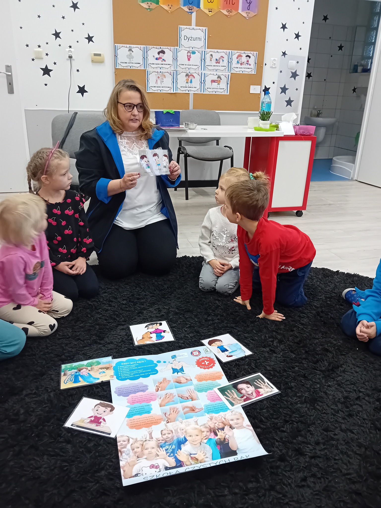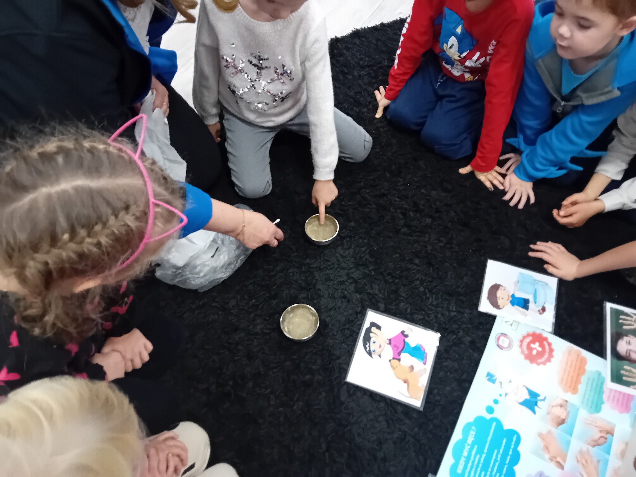 W dniu 29.11.2024 r. w ramach realizacji wojewódzkiego projektu „Klub Zdrowego Przedszkolaka” oraz kampanii edukacyjnej „Nie bądź atrakcyjny dla kleszczy” przeprowadzono zajęcia edukacyjne dla dzieci z Przedszkola Niepublicznego Bajkowy Zameczek w Tarnowskich Górach. Podczas zajęć zapoznano dzieci z bajką pt. „Przygody dzielnego niedźwiadka Szczepana”, rozmawiano na temat profilaktyki chorób i higieny osobistej, w tym o prawidłowym myciu rąk. Wspólnie z dziećmi przeprowadzono doświadczenie – „uciekający brud”. Ciekawym elementem zajęć była prezentacja kleszczy w probówkach.