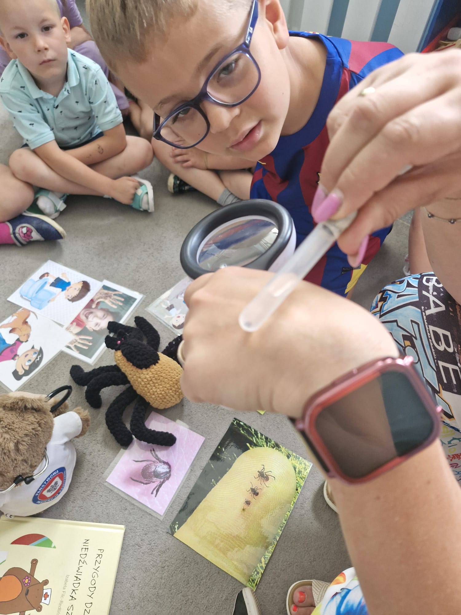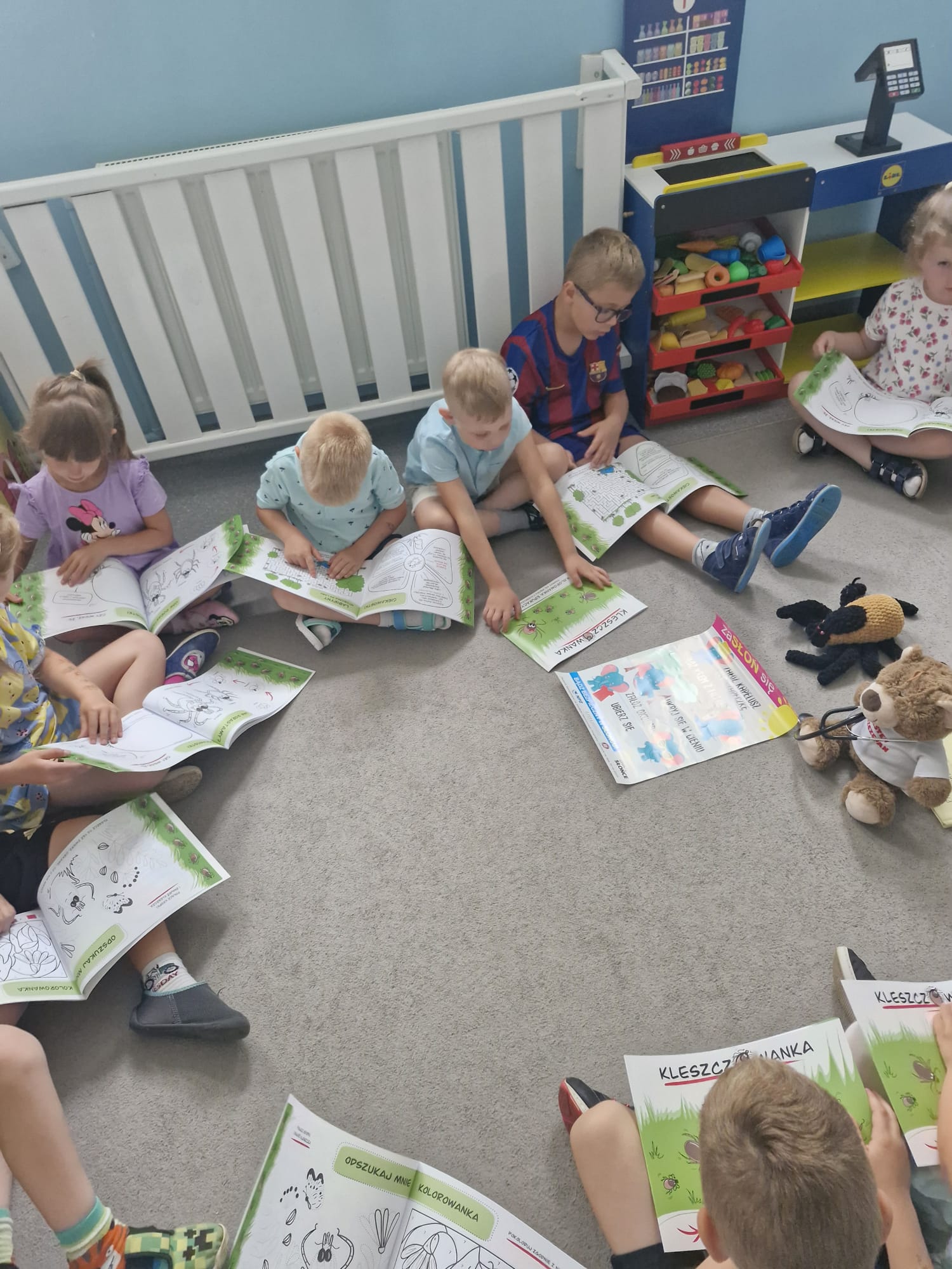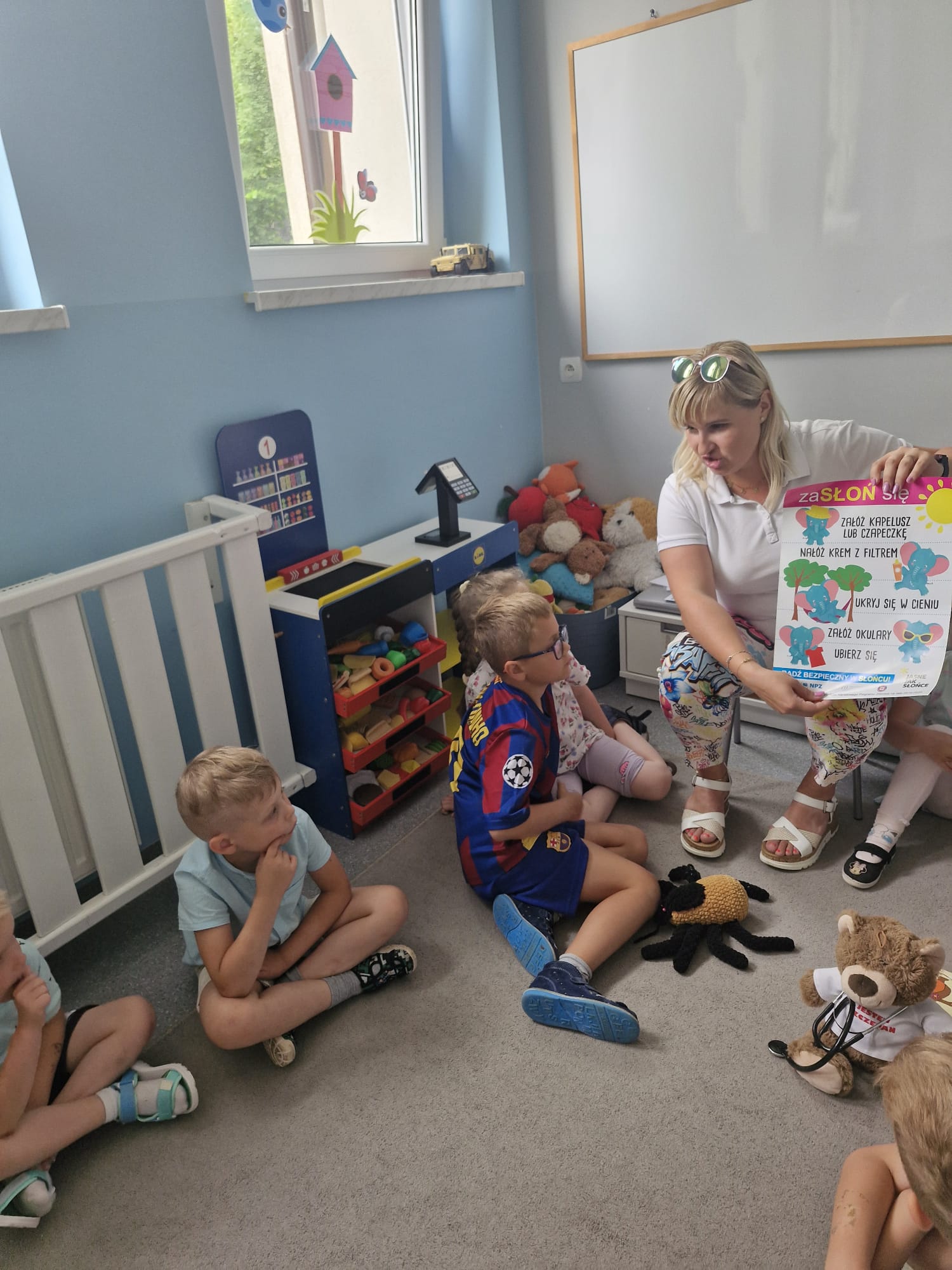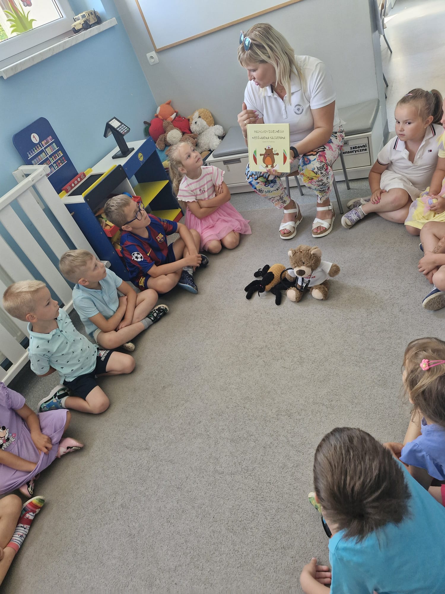 Wakacje to czas relaksu i zabawy, dlatego ważne jest, aby każde dziecko umiało zachować się w trudnej sytuacji. Pracownik Powiatowej Stacji Sanitarno-Epidemiologicznej w Bytomiu w towarzystwie niedźwiadka Szczepana i Kleszczusia🕷 odwiedził dzieci z Przedszkola w Zbrosławicach. Przypomniano jak zachować się w sytuacjach kryzysowych, bezpiecznie korzystać ze słońca i chronić się przed kleszczami oraz dlaczego higiena i szczepienia są tak ważne w profilaktyce chorób zakaźnych.