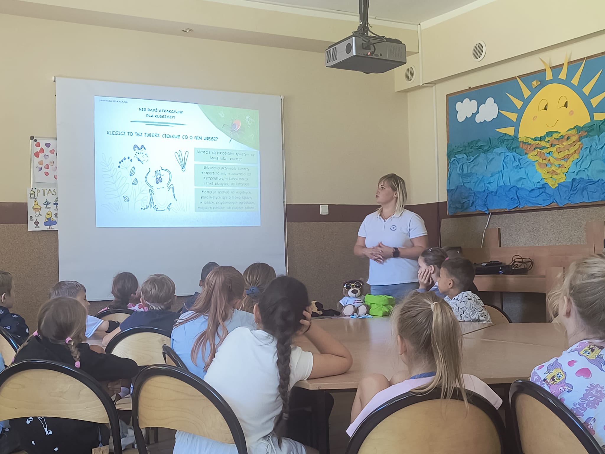 W dniu 05.08.2025 r., w ramach akcji edukacyjnej #Bezpiecznewakacje, pracownik PSSE w Bytomiu spotkał się z dziećmi uczestniczącymi w półkoloniach w Szkole Podstawowej nr 2 im. Jana Pawła II w Radzionkowie, aby porozmawiać o zagrożeniach, które występują w czasie wakacji. Dzieci wysłuchały prezentacji multimedialnej, obejrzały z bliska eksponaty kleszczy w probówkach, a także aktywnie uczestniczyły w „Ścieżce zdrowia” - mini torze sprawnościowym z elementami edukacyjnymi.