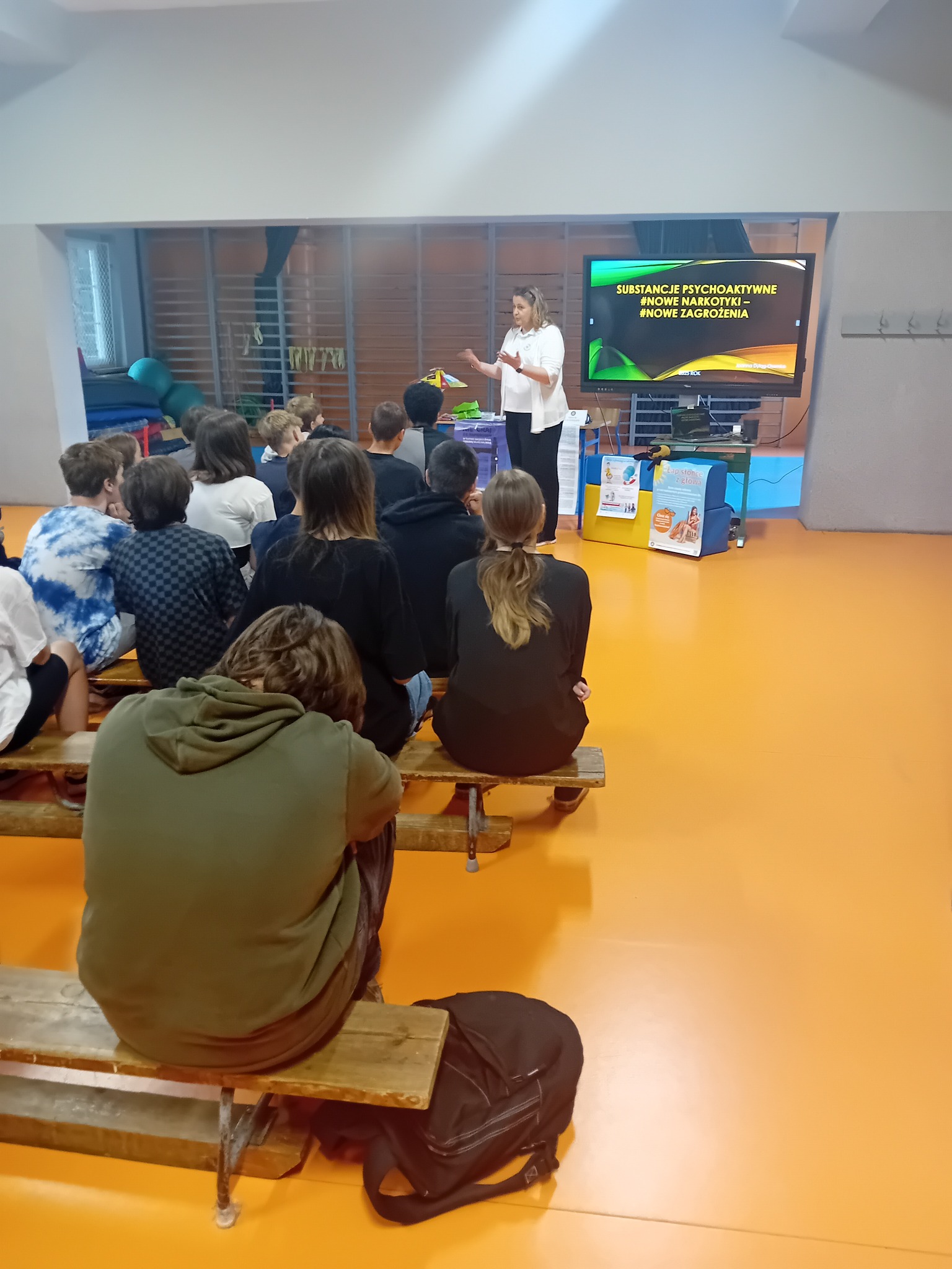 Wakacje coraz bliżej, dlatego dzisiaj w Szkole Podstawowej nr 36 w Bytomiu uczniowie klas VII i VIII wzięli udział w zajęciach profilaktycznych przeprowadzonych przez Kierownika Sekcji Promocji Zdrowia i Komunikacji Społecznej PSSE Bytom, poświęconych zasadom bezpiecznego spędzania czasu wolnego ze szczególnym uwzględnieniem substancji psychoaktywnych. Działanie to ma na celu zwiększenie świadomości młodzieży na temat zagrożeń związanych z używaniem substancji psychoaktywnych i e-papierosów. Uczniowie poznali mechanizmy działania, ich wpływ na organizm oraz możliwe konsekwencje zdrowotne i społeczne, ponadto wzięli udział w quizie, który pomógł utrwalić zdobytą wiedzę.