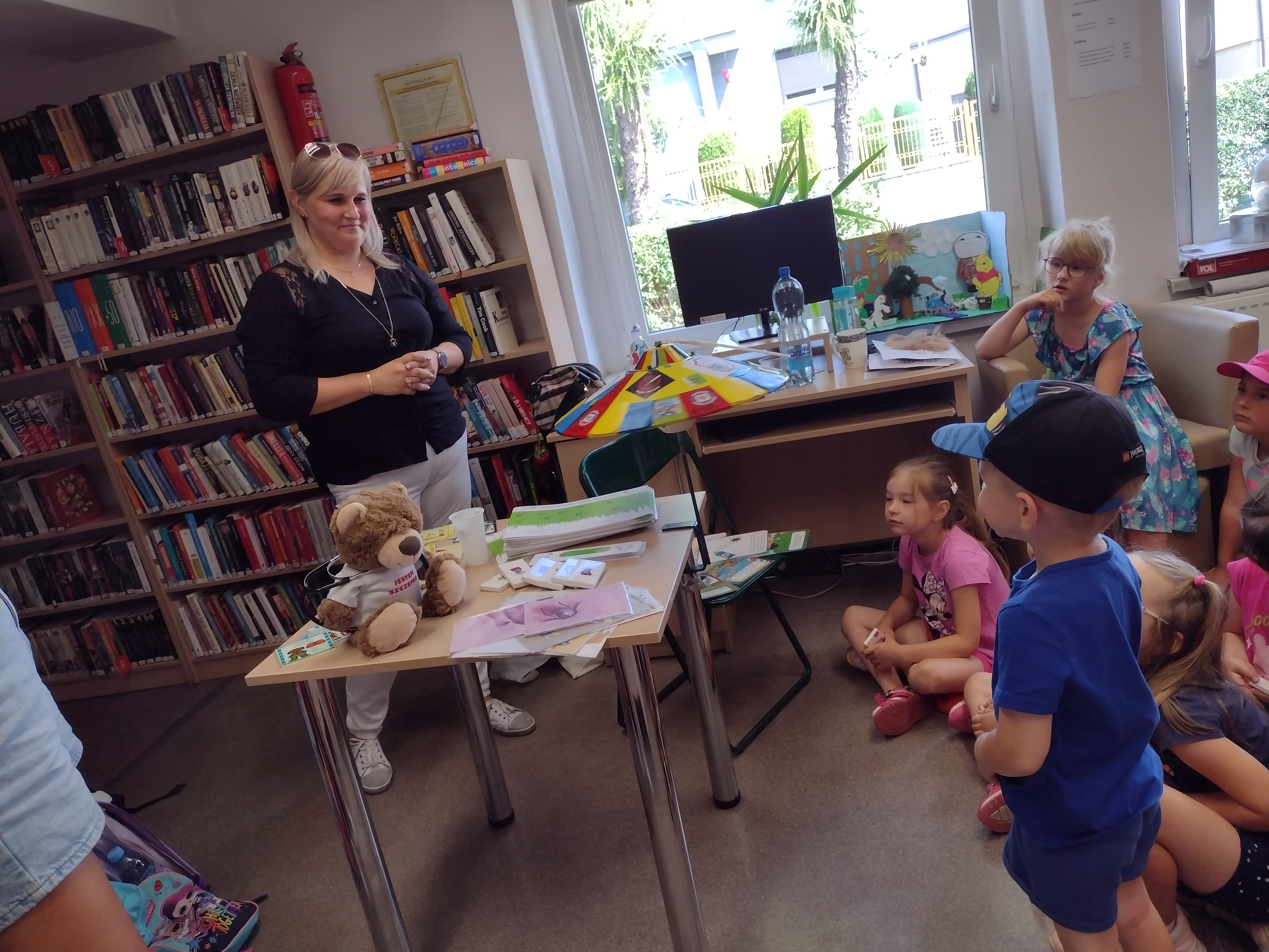 W dniu 07.07.2023 r. pracownik Powiatowej Stacji Sanitarno-Epidemiologicznej w Bytomiu przeprowadził zajęcia edukacyjno-profilaktyczne dla dzieci w Gminnej Bibliotece Publicznej w Świerklańcu na temat #BezpieczneWakacje2023. Podczas spotkania przeprowadzono pogadankę na temat podstawowych zasad bezpiecznego zachowania podczas wakacji, korzystania z promieniowania słonecznego, zdrowego stylu życia, higieny osobistej, w tym o prawidłowym myciu rąk, a także poruszano temat profilaktyki chorób odkleszczowych i zakaźnych. Ciekawym elementem zajęć była prezentacja kleszczy w probówkach oraz quiz wiedzy z przygotowanymi pytaniami.