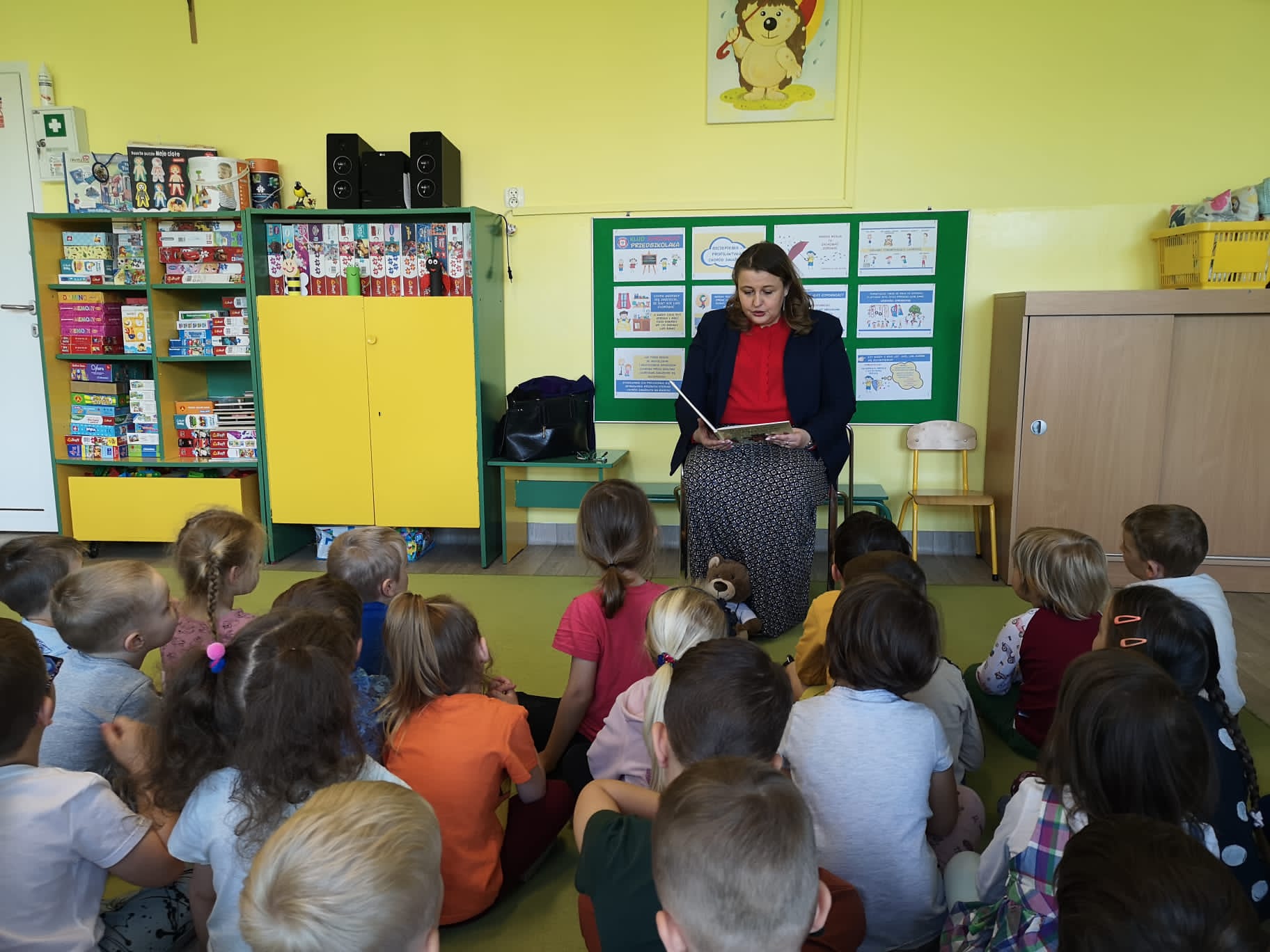 Zajęcia profilaktyczne dla dzieci połączone z czytaniem bajki "Przygody dzielnego niedźwiadka Szczepana" w Miejskim Przedszkolu nr 10 ''Pod Topolą'' im. Janusza Korczaka w Piekarach Śląskich