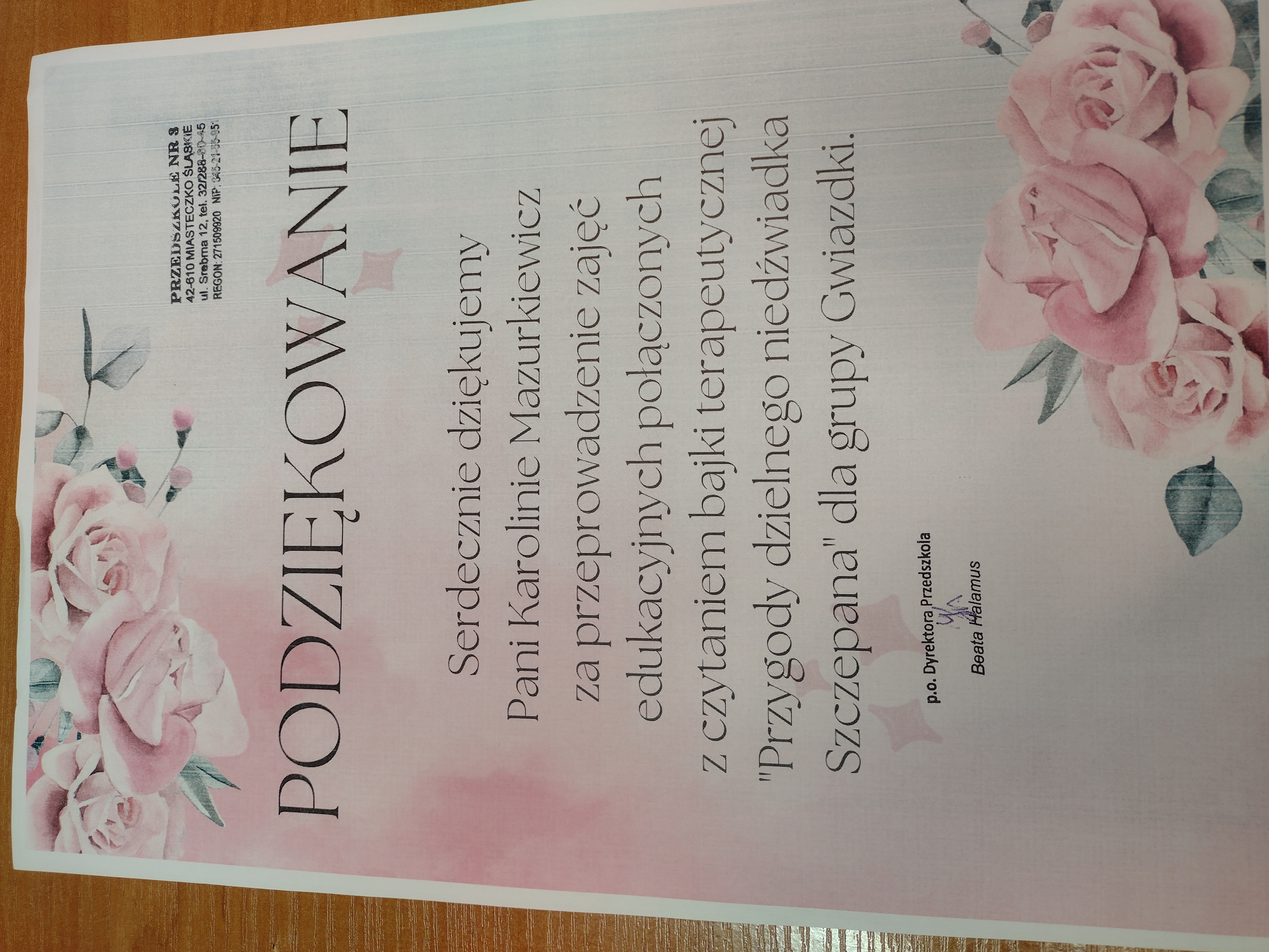 Z okazji Dnia Dziecka, w dniu 02.06.2023 r. przedstawiciel Powiatowej Stacji Sanitarno- Epidemiologicznej w Bytomiu przeprowadził zajęcia edukacyjne połączone z czytaniem bajki terapeutycznej pt. „Przygody Dzielnego Niedźwiadka Szczepana” dla dzieci z grupy Gwiazdki z Przedszkola nr 3 w Miasteczku Śląskim. Podczas spotkania rozmawiano z dziećmi na temat zdrowego stylu życia, aktywności fizycznej, higieny osobistej, w tym o prawidłowym myciu rąk a także poruszano temat profilaktyki chorób odkleszczowych i zakaźnych. Trudny temat dla dzieci pomógł przybliżyć Niedźwiadek Szczepan, który jest głównym bohaterem bajki i na co dzień mieszka w przychodni, gdzie pomaga dzieciom przezwyciężyć lęk związany ze szczepieniem. Najmłodsi czynnie brali udział w zajęciach, wykazali się ogromną wiedzą na temat profilaktyki zdrowia. Na zakończenie zajęć, każde dziecko w nagrodę otrzymało breloczek „misia”.
