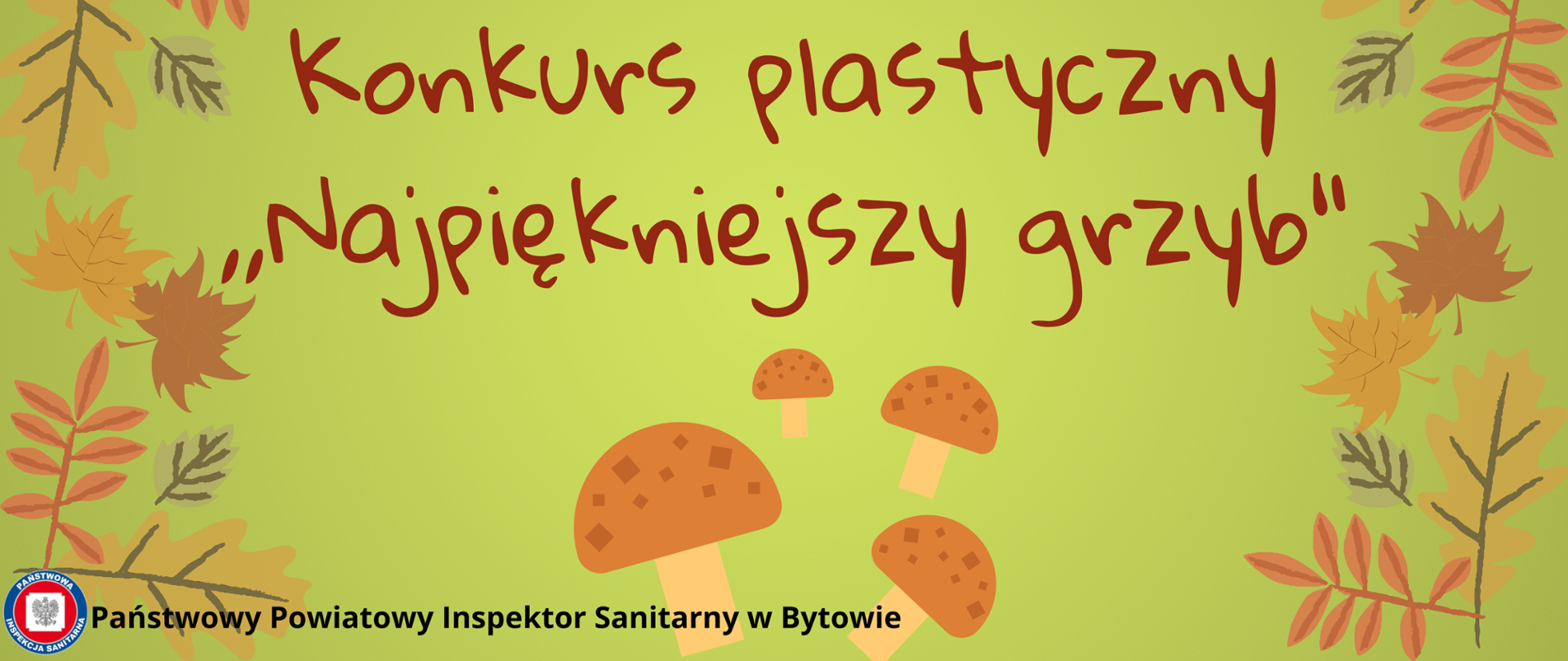 Konkurs plastyczny ,,Najpiękniejszy grzyb"Państwowy Powiatowy Inspektor Sanitarny w Bytowie w związku z trwającym okresem grzybowym ogłasza konkurs plastyczny pod hasłem: „Najpiękniejszy grzyb”. Konkurs przeznaczony jest dla dzieci w wieku przedszkolnym (5-6 lat). Celem konkursu jest zwiększenie wiedzy na temat grzybów oraz uświadomienie ich roli w przyrodzie, a także zagrożeń dla zdrowia i życia wynikających ze zbierania i spożywania nieznanych grzybów.