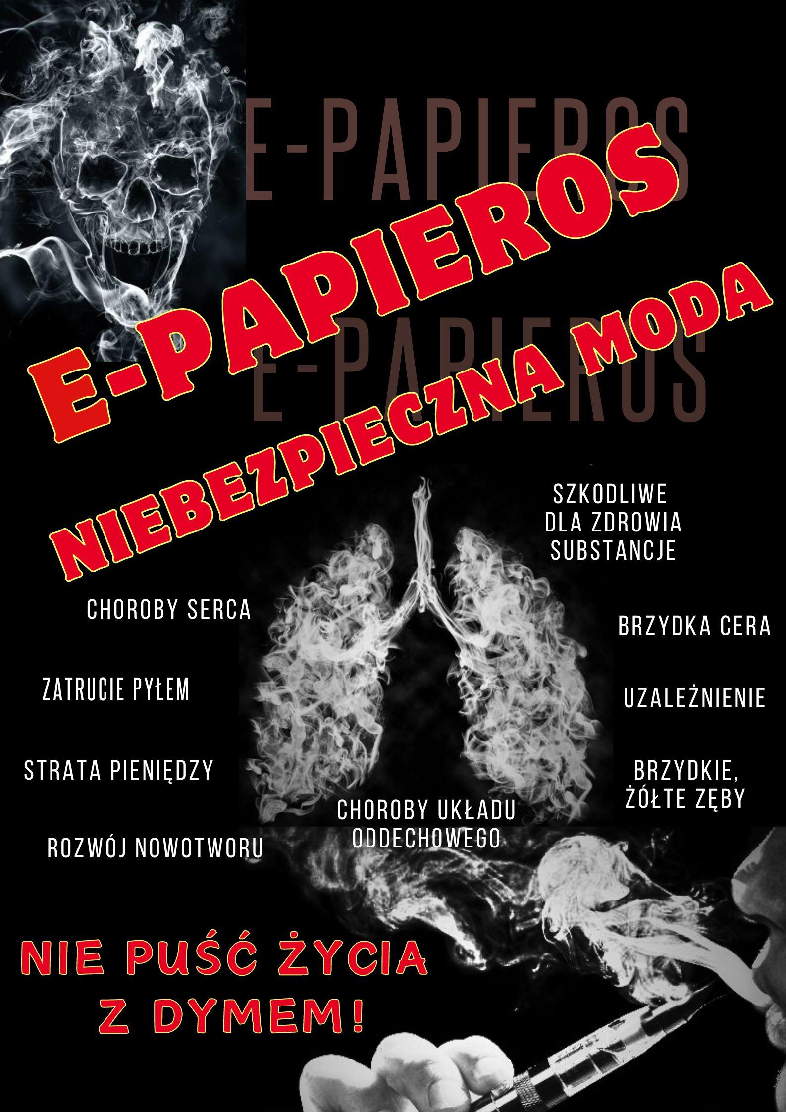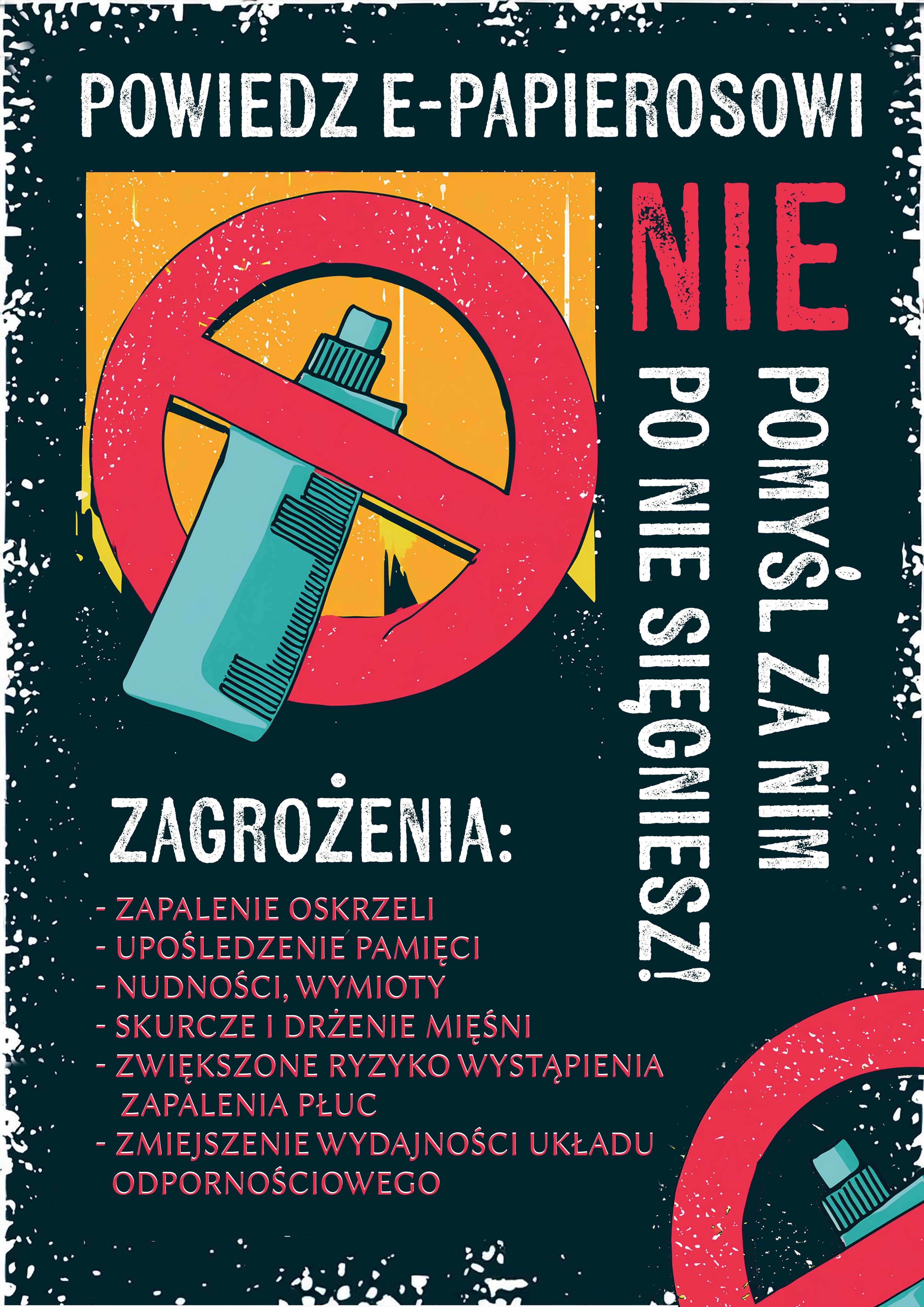 OGŁOSZENIE WYNIKÓW POWIATOWEGO KONKURSU NA PLAKAT GRAFICZNY "E-PAPIEROS - NIEBEZPIECZNA MODA"