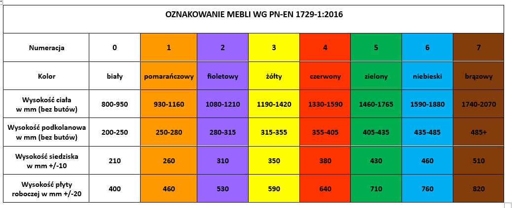 i placówkach (Dz. U. z 2020 r., poz. 1604) oraz Normy PN-EN 1729-1:2016 Meble - Krzesła