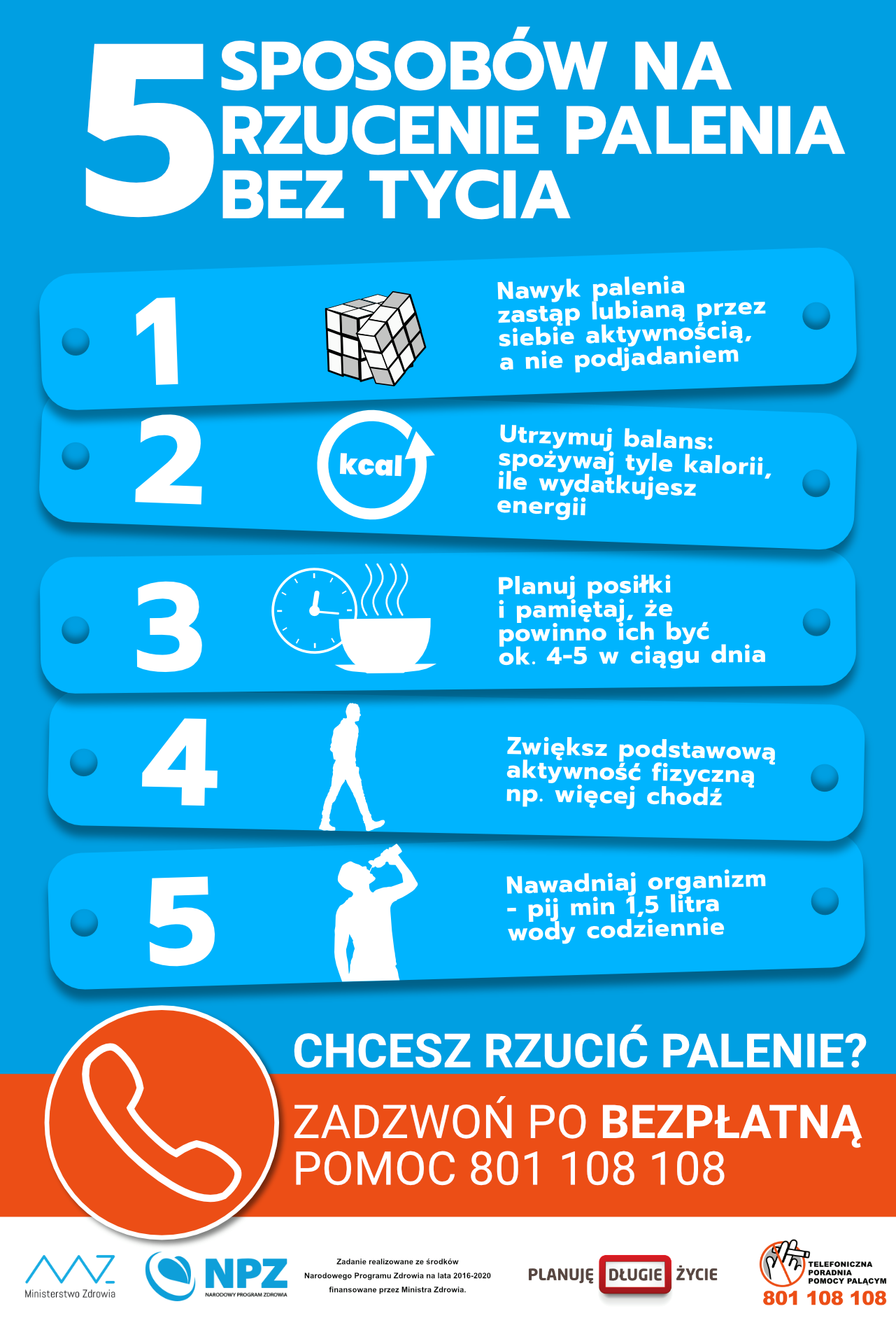 Uzależnienie od nikotyny jest chorobą, dlatego rzucanie palenia nie zawsze przebiega łatwo. Skorzystaj z profesjonalnej pomocy, by zwalczyć uzależnienie. Oferuje ją Ogólnopolska Telefoniczna Poradnia Pomocy Palącym działająca przy Narodowym Instytucie Onkologii w Warszawie pod telefonami 801 108 108 oraz 22 211 80 15. Konsultanci są dostępni od poniedziałku do piątku w godzinach 11:00–19:00 oraz w soboty w godzinach 9:00–15.00.