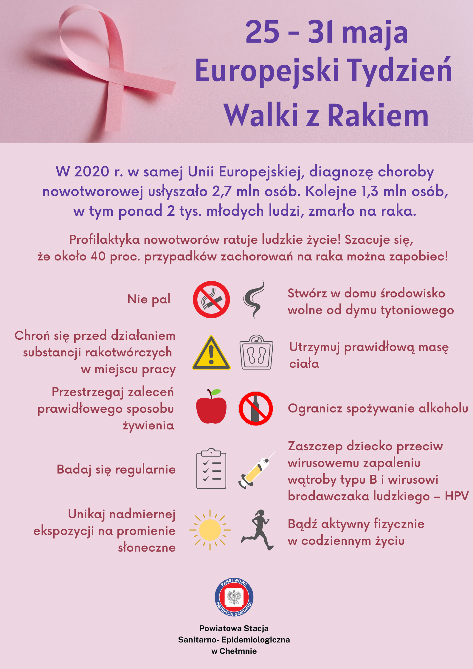 Europejski Tydzień Walki z Rakiem obchodzony jest od 1989 roku między 25 a 31 maja i kończy 31 maja Światowym Dniem Bez Tytoniu. Celem działań w tym okresie jest podnoszenie świadomości społeczeństwa na temat profilaktyki nowotworowej, dostępu do diagnostyki i leczenia oraz wsparcia dla pacjentów chorych onkologicznie.
