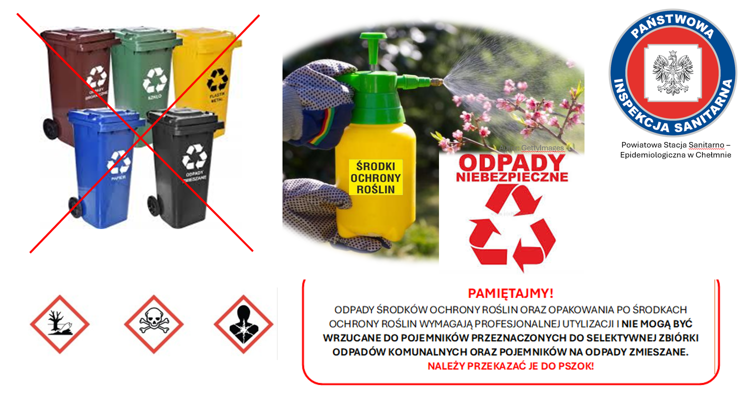 Państwowy Powiatowy Inspektor Sanitarny w Chełmnie informuje, iż zgodnie z art. 3ust.2b ustawy z dnia 13 września 1996 r. o utrzymaniu czystości i porządku w gminach (Dz.U. z 2024 r. poz. 399), gmina jest zobowiązana utworzyć co najmniej jeden punkt selektywnego zbierania odpadów komunalnych (PSZOK) oraz winna przyjąć wszystkie odpady komunalne (w tym niebezpieczne) wytworzone przez osoby objęte gminnym systemem odbioru i zagospodarowania odpadów komunalnych.