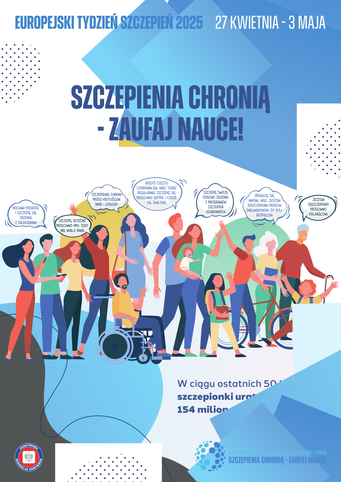 27 kwietnia - 3 maja 2025 r. Szczepienia chronią - Zaufaj nauce! W ciągu ostatnich 50 lat szczepionki uratowały życie 154 milionom osób.