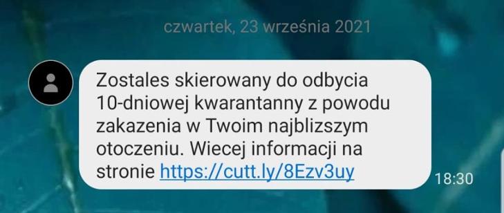 Główny Inspektor Sanitarny ostrzega przed fałszywymi SMS-ami od nadawcy Kwarantanna. Jest to próba wyłudzenia danych osobowych. Prosimy nie otwierać linku wskazanego w wiadomości. Inspekcja sanitarna nigdy nie wysyłała, ani nie wysyła wiadomości z przekierowaniem do stron.