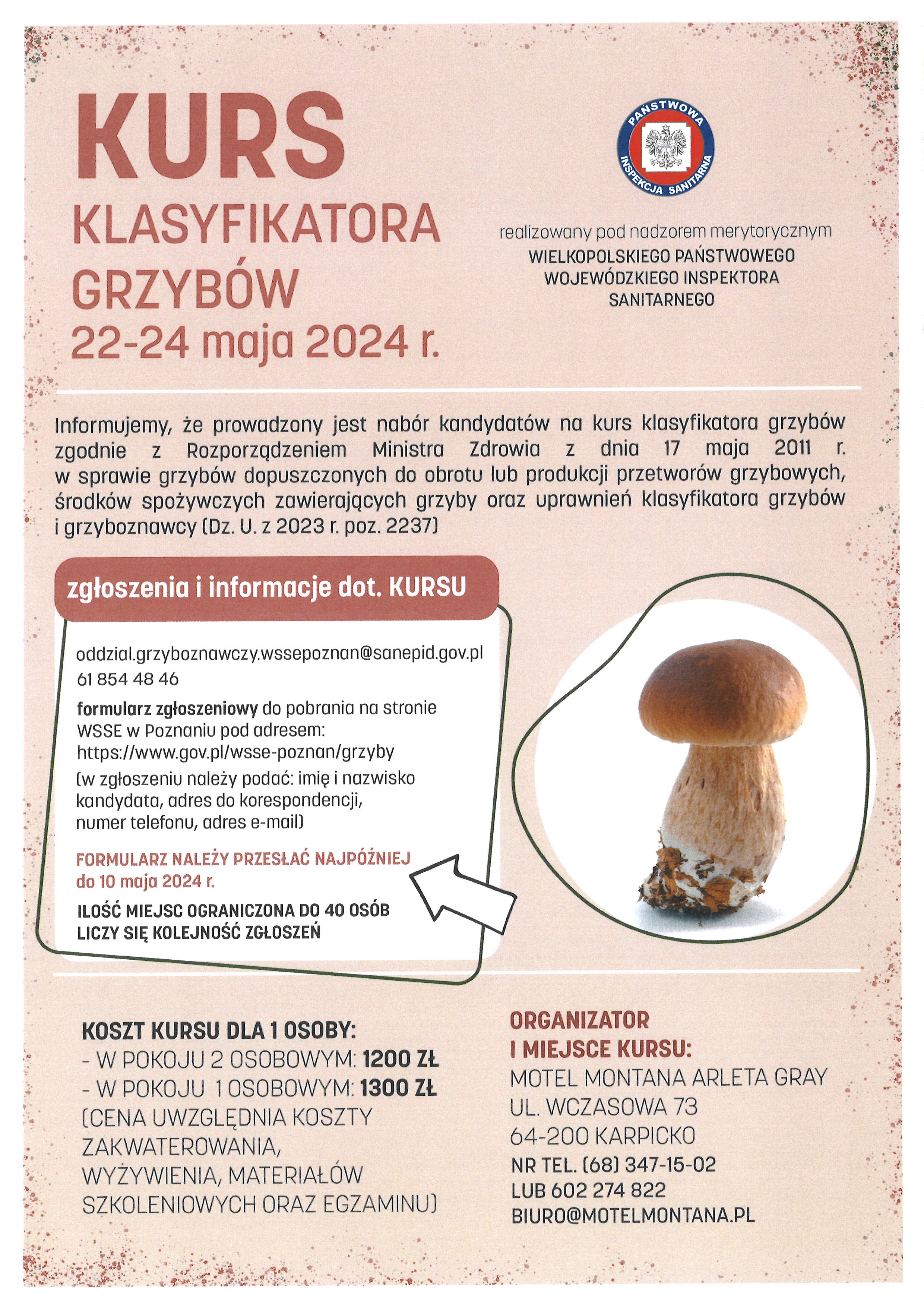Kurs klasyfikatora grzybów 22-24 maja 2024 r.