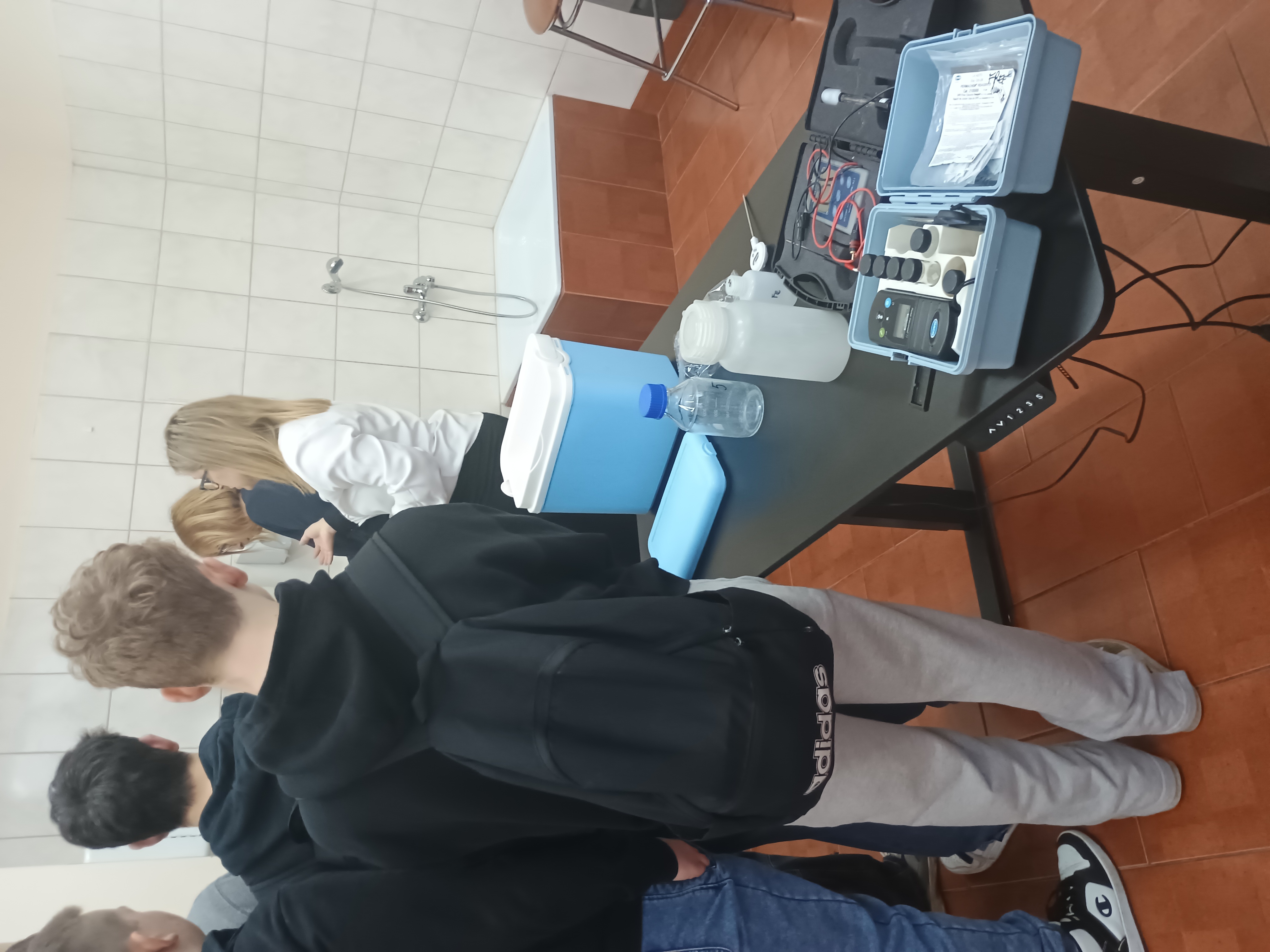 Młodzież miała również okazję zapoznać się z tematem nadzoru nad jakością wody sprawowanego przez Inspekcję Sanitarną. Miała możliwość zobaczenia w jaki sposób pracownicy PSSE w Chrzanowie przygotowują się do poboru próbek wody.