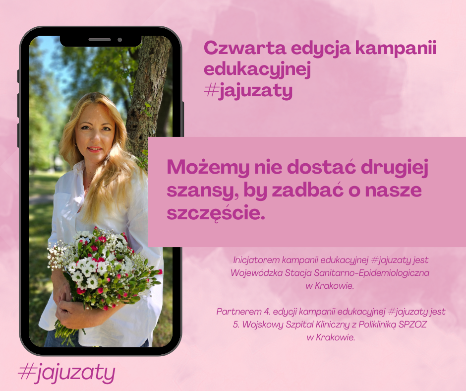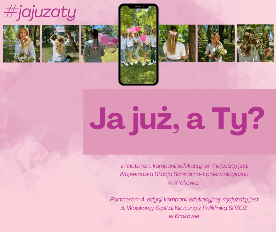 Wojewódzka Stacja Sanitarno-Epidemiologiczna w Krakowie w partnerstwie z 5. Wojskowym Szpitalem Klinicznym z Polikliniką SP ZOZ w Krakowie włączając się w działania na rzecz profilaktyki raka piesi rozpoczyna czwartą edycję wojewódzkiej kampanii edukacyjno-informacyjnej pn. „Ja już, a Ty?" (#jajuzaty). W tym roku głos zabierają Panowie, którzy zachęcają kobiety do regularnego samobadania piersi i wykonywania badań profilaktycznych w gabinecie lekarskim. Ambasadorem czwartej edycji kampanii jest prof. nadzw. dr hab. n. med. Wojciech Wysocki, konsultant wojewódzki w dziedzinie chirurgii onkologicznej reprezentujący 5. Wojskowy Szpital Kliniczny z Polikliniką SPZOZ w Krakowie.
