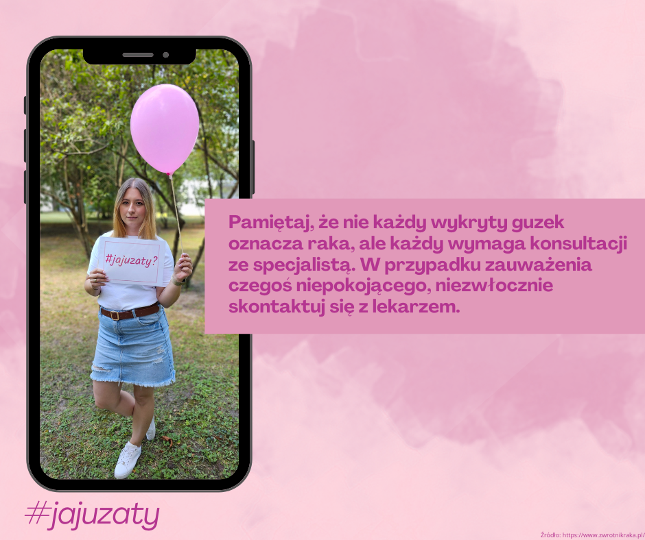 Dołącz do nas - zbadaj się i zamieść w swoich mediach społecznościowych zdjęcie z kartką opatrzoną hashtagiem #jajuzaty? z tym samym hashtagiem w opisie zdjęcia.
