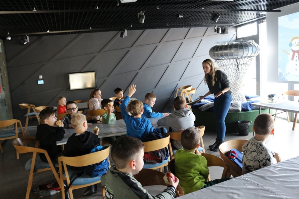 Tym razem gościliśmy w Parku Nauki Torus, gdzie przeprowadziliśmy pogadankę na temat zasad bezpiecznego wypoczynku zimowego. Rozmawialiśmy o tym, jak dbać o higienę osobistą oraz higienę wypoczynku. Zachęcaliśmy dzieci do spędzania czasu na świeżym powietrzu, rezygnując z korzystania urządzeń cyfrowych.