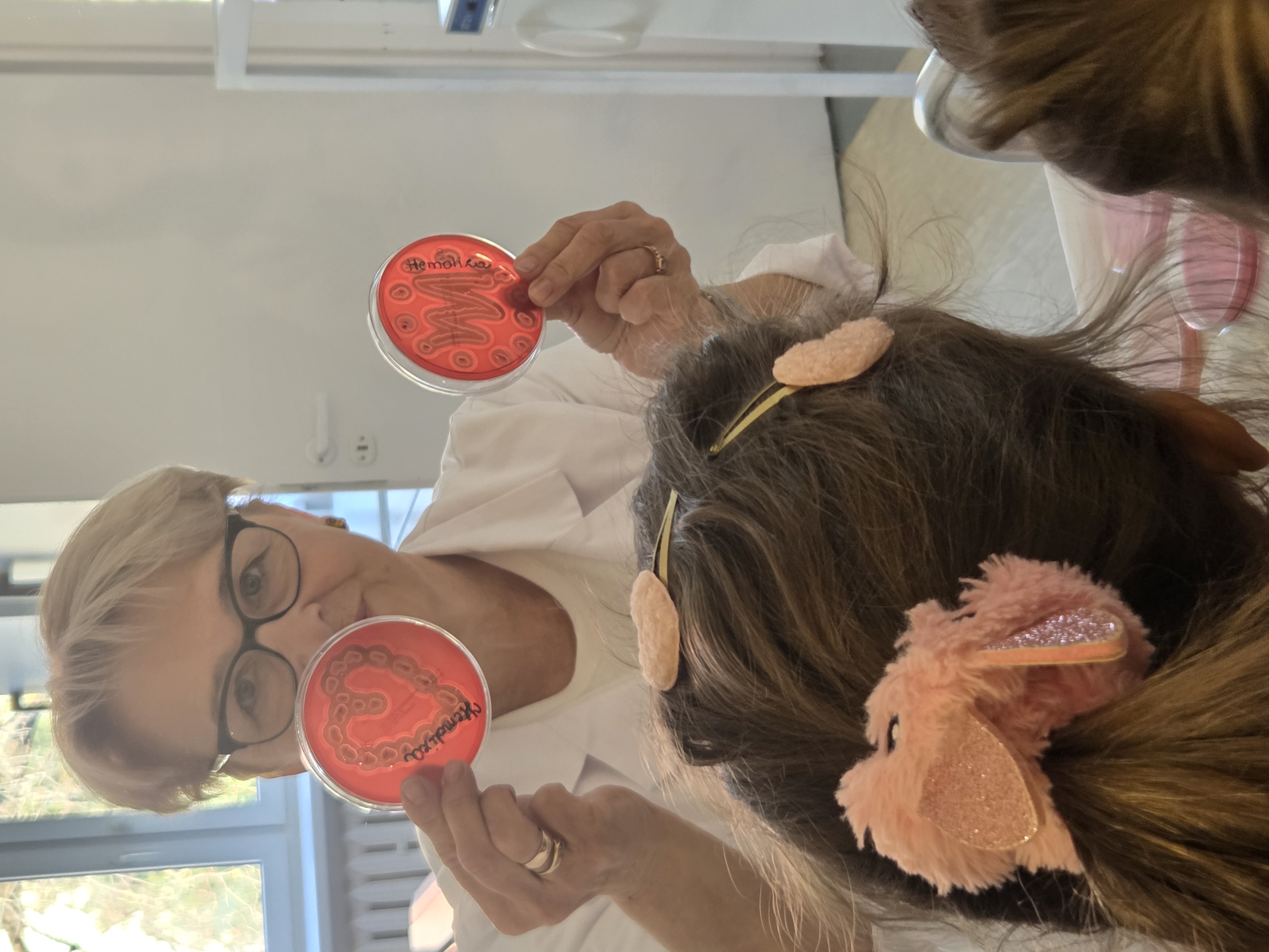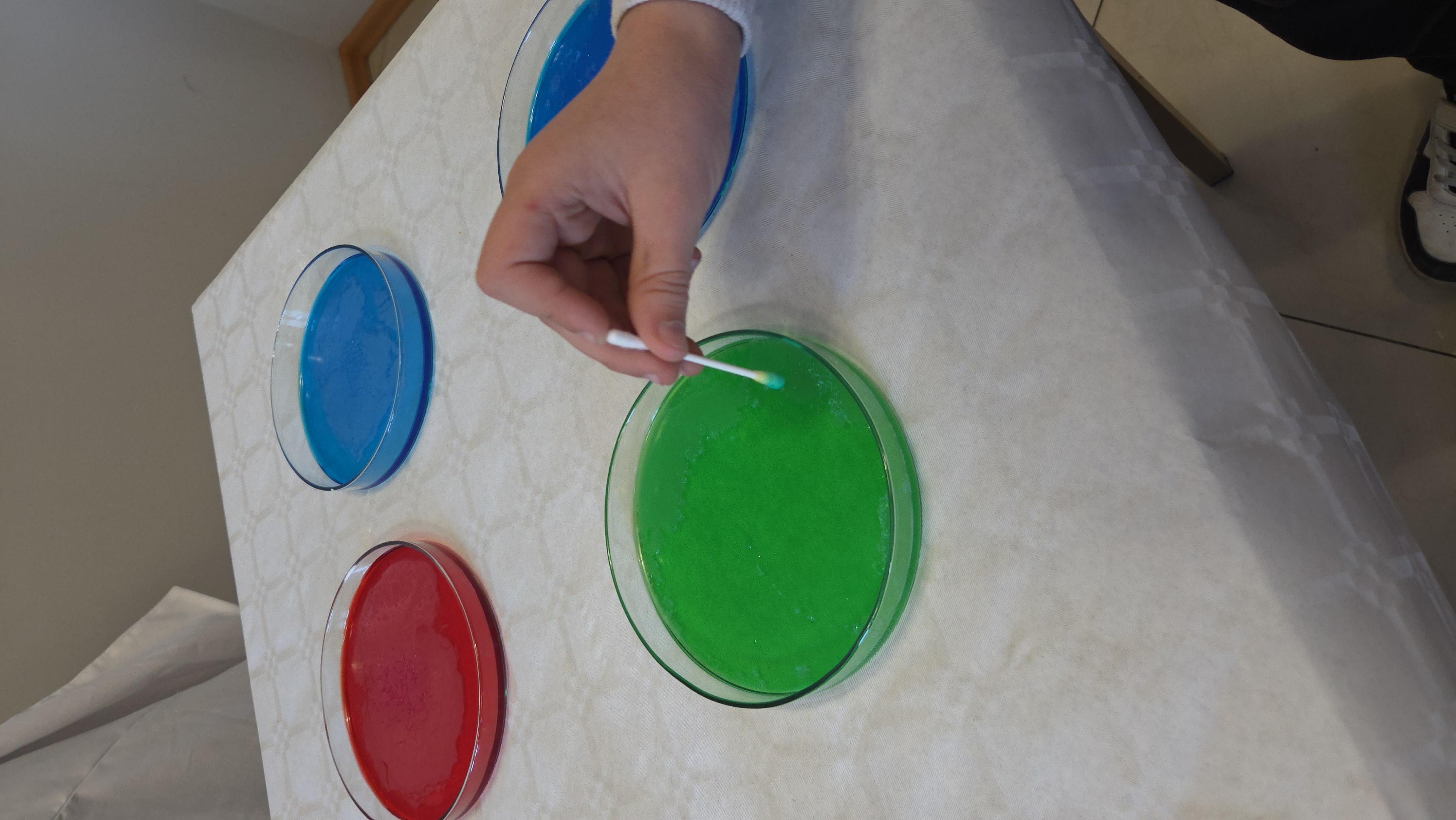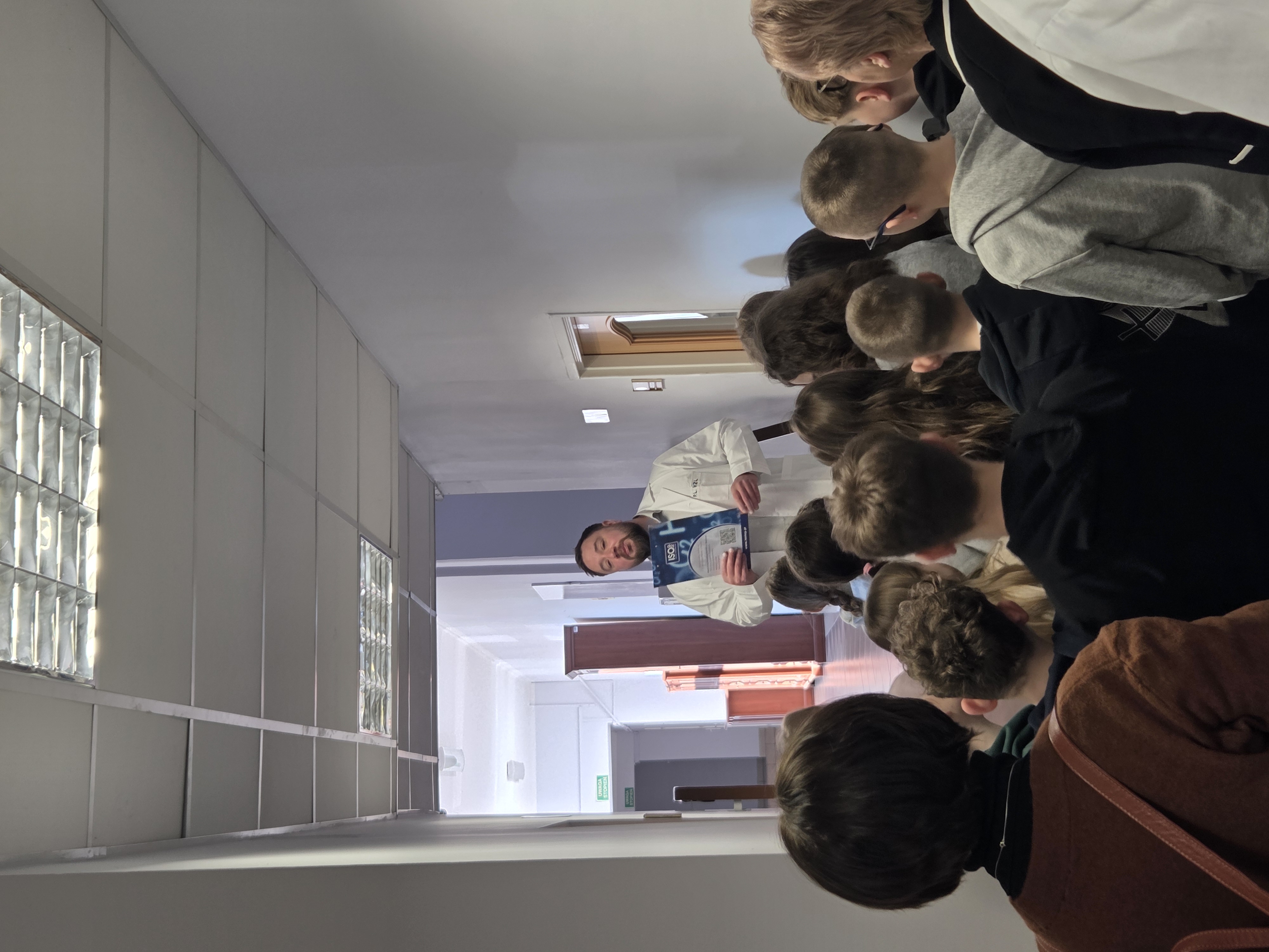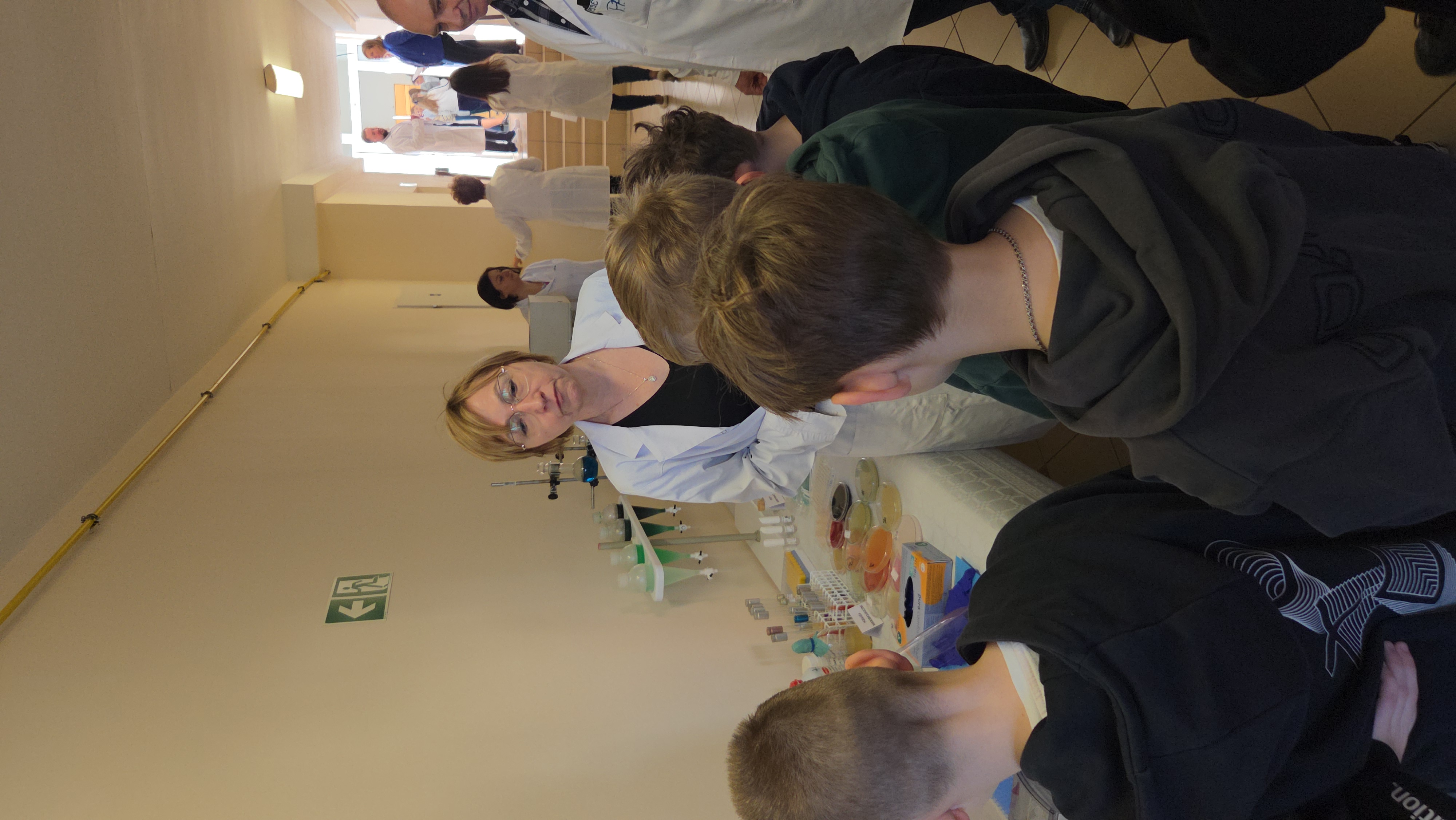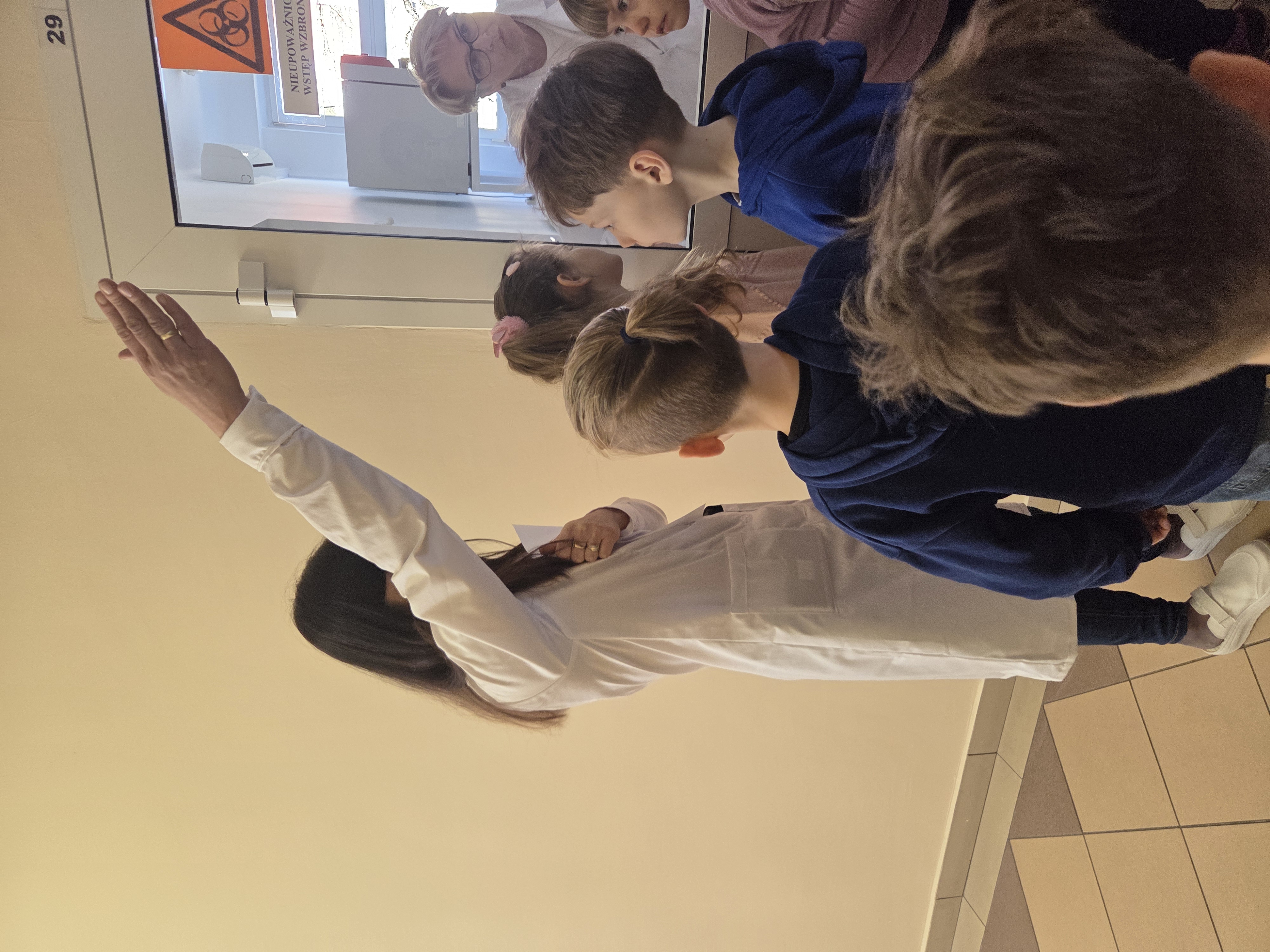 Pod mikroskopem obserwowaliśmy drożdże, wyhodowaną pleśń, lampy lawy, bakterie wyhodowane z rozmaitych powierzchni: klamek, poręczy, telefonów komórkowych itp. – co wzbudziło niemałe emocje! 🦠😄 Było też ważenie, eksperymenty z napięciem powierzchniowym z użyciem brokatu oraz barwienie przy pomocy naturalnych składników – kapusty, szpinaku i kwasku cytrynowego. Ogromnym zainteresowaniem cieszyła się również ekspozycja sprzętu laboratoryjnego – można było zobaczyć