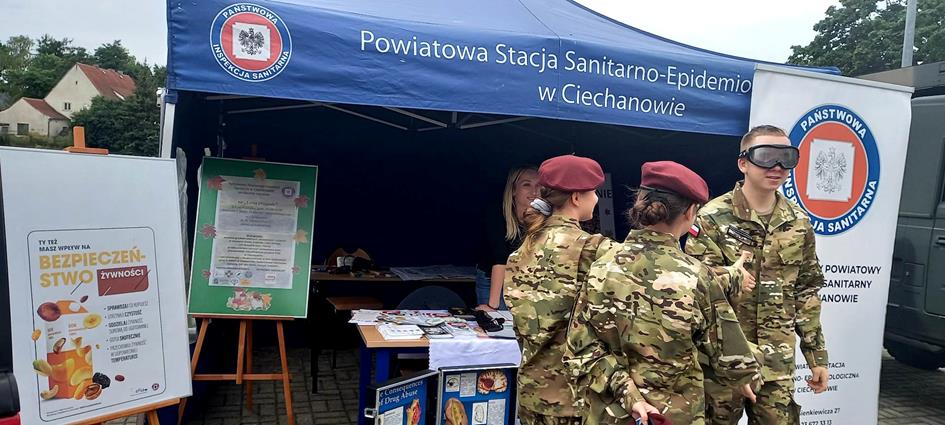 W sobotę, 23 września 2023 r., PSSE w Ciechanowie miała okazję przeprowadzić akcję profilaktyczną w ramach kampanii EFSA „Wybieraj bezpieczną żywność” podczas Wojskowego Dnia Otwartego, zorganizowanego przez Państwową Uczelnią Zawodową im. Ignacego Mościckiego w Ciechanowie i Wojskowe Centrum Rekrutacji w Ciechanowie.