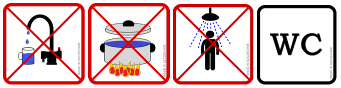 W związku z powyższym woda nie nadaje się do spożycia (picia, przygotowywania posiłków, mycia owoców i warzyw itp.,) oraz do celów higienicznych (mycia się i kąpieli).