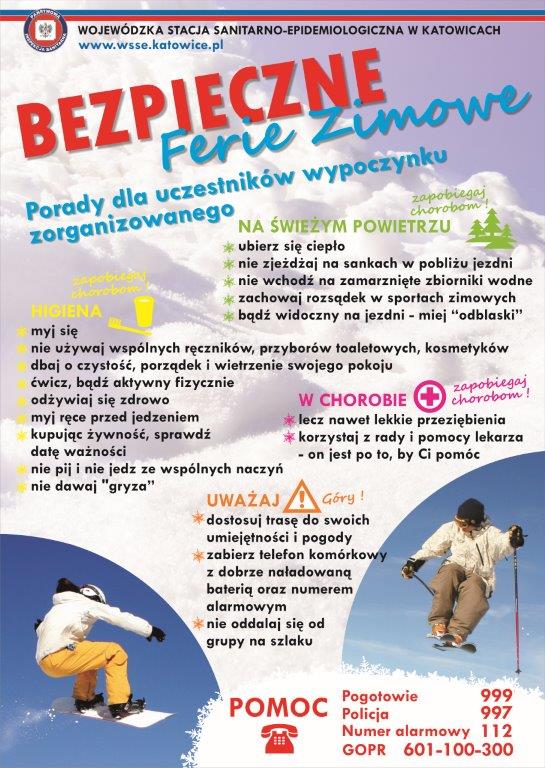 W związku z rozpoczynającym się okresem ferii zimowych w ramach akcji "Bezpieczne Ferie 2022" podjęte działania informacyjne do wszystkich organizatorów półkolonii zimowych mają na celu stworzenie bezpiecznych warunków wypoczynku dzieci i młodzieży.