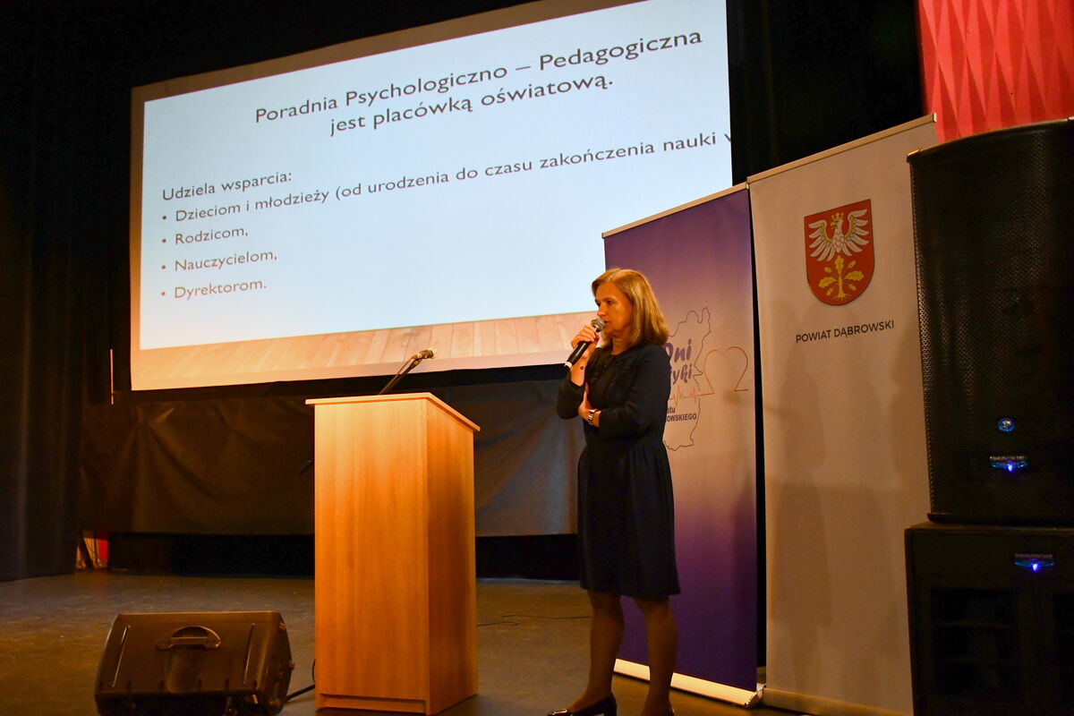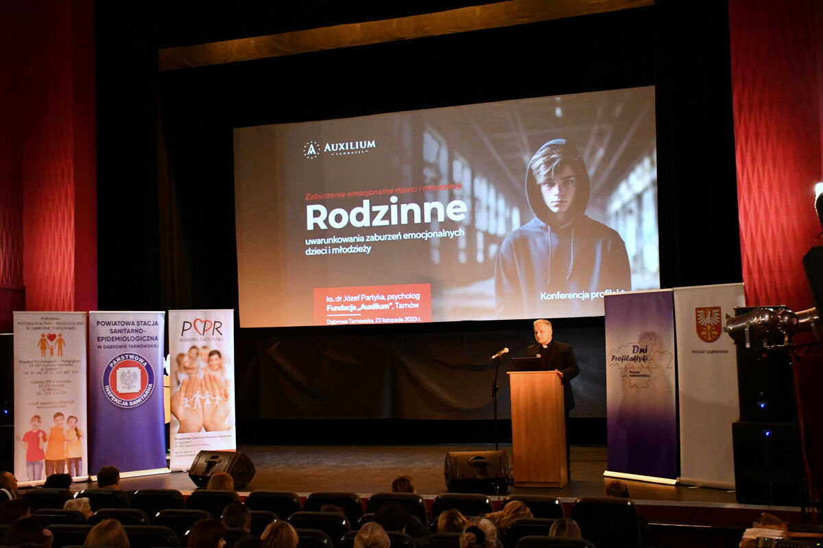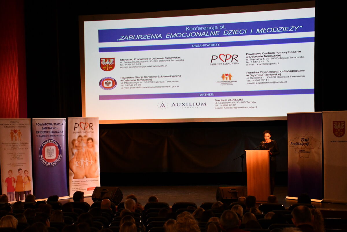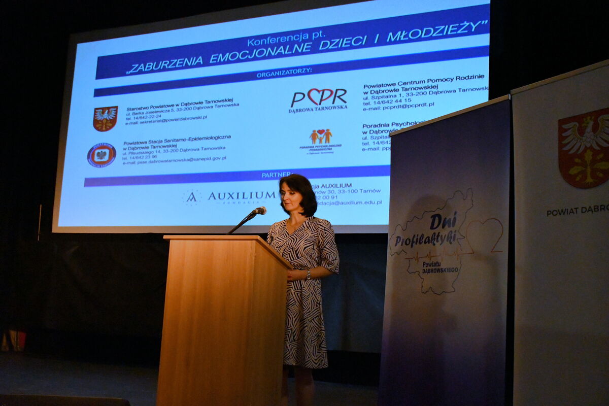 W dniu 23 listopada 2023 r. w Dąbrowie Tarnowskiej w ramach Dni Profilaktyki Powiatu Dąbrowskiego odbyła się konferencja profilaktyczna pn. „Zaburzenia emocjonalne dzieci i młodzieży”, której organizatorami byli: Starostwo Powiatowe w Dąbrowie Tarnowskiej, Powiatowa Stacja Sanitarno-Epidemiologiczna w Dąbrowie Tarnowskiej, Powiatowe Centrum Pomocy Rodzinie w Dąbrowie Tarnowskiej oraz Poradnia Psychologiczno-Pedagogiczna w Dąbrowie Tarnowskiej.
