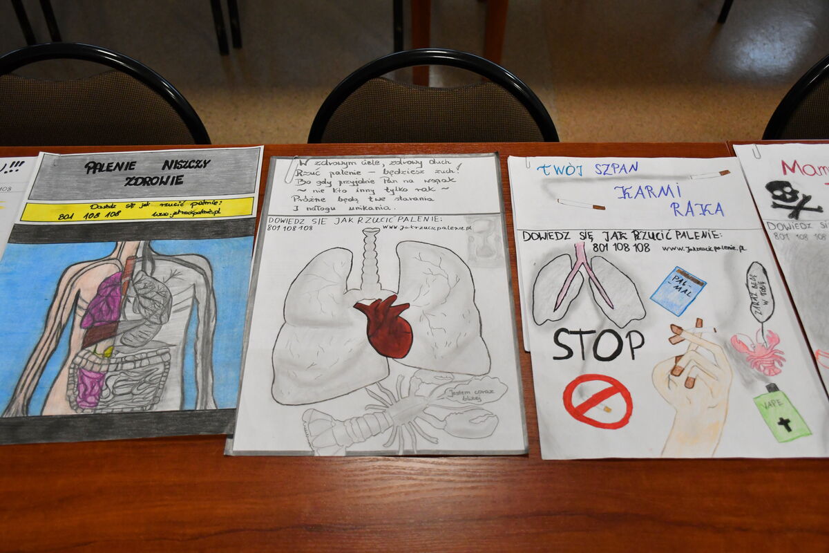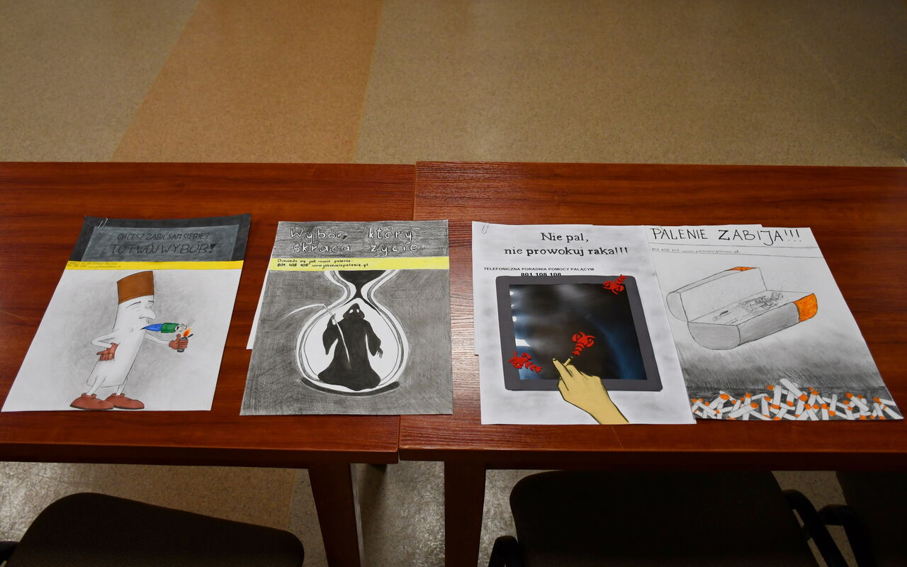 Spośród 46 prac, które wpłynęły na konkurs plastyczny ph. „Palenie zabija – rzuć teraz!” Komisja konkursowa wyłoniła ostatecznie 4 laureatów, przyznając im odpowiednio następujące miejsca: