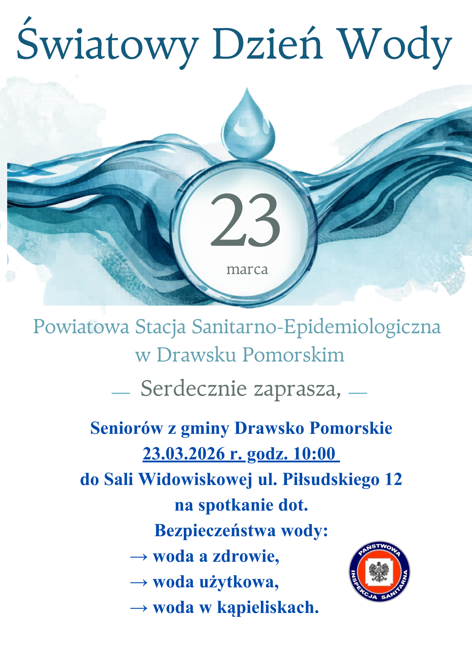 1. Seniorów z gminy Drawsko Pomorskie 23.03.2026 r. godz. 10:00 do Sali Widowiskowej ul. Piłsudskiego 12
