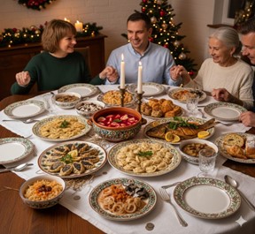 Święta Bożego Narodzenia to czas spotkań przy wspólnym, rodzinnym stole. Razem spożywamy tradycyjne potrawy - barszcz z uszkami, pierogi z kapustą i grzybami, kutię, rybę po grecku, karpia, śledzie...