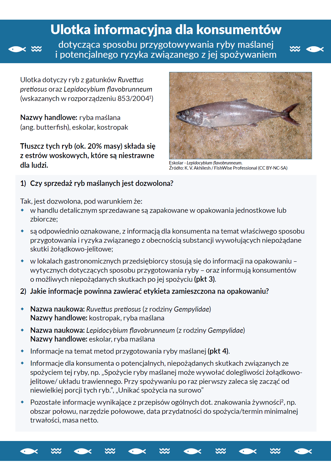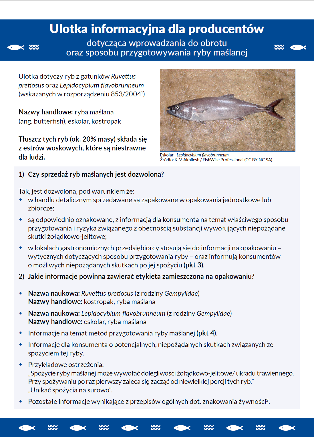 Ryba maślana - materiały informacyjne dla konsumentów i producentów