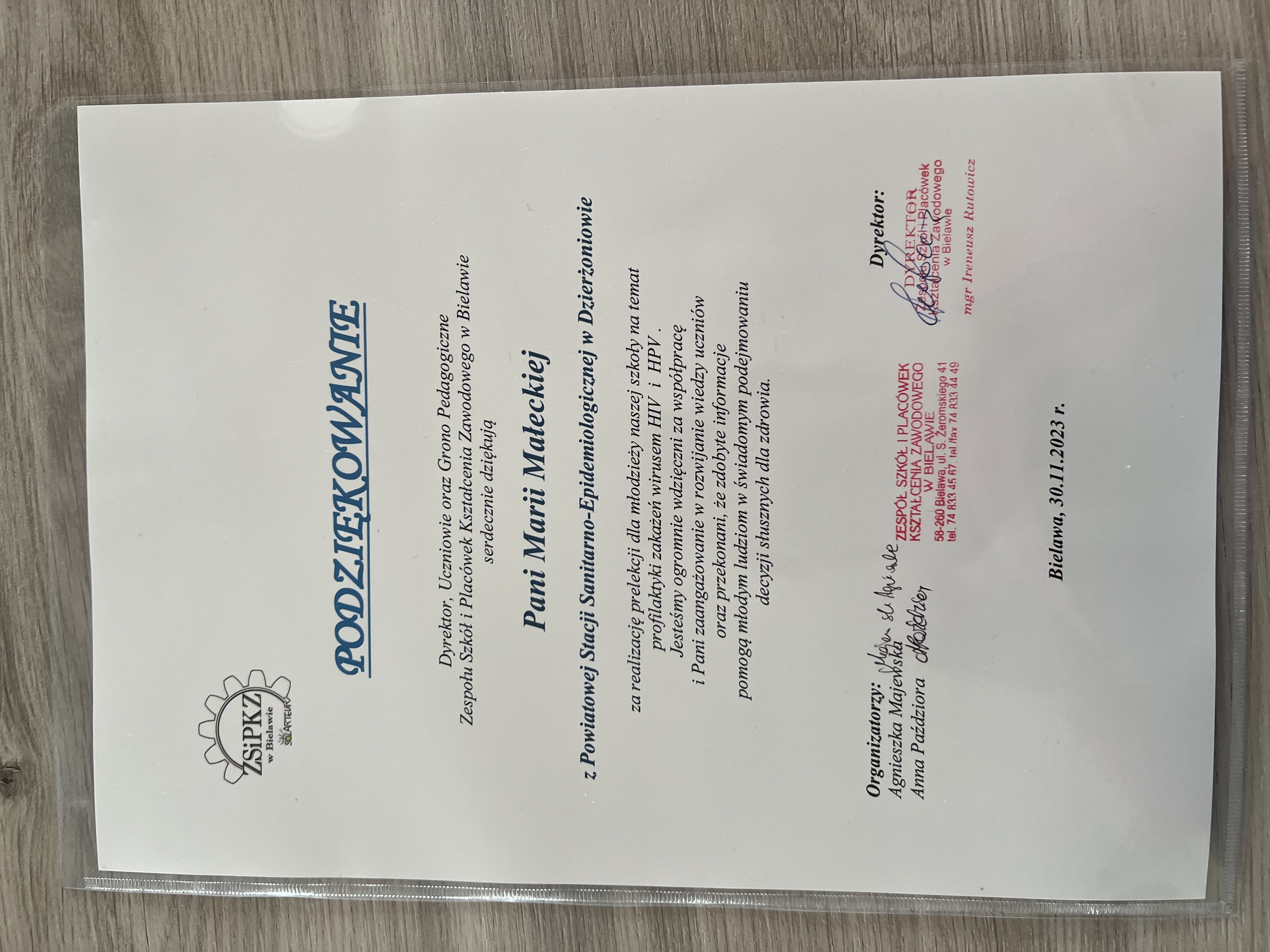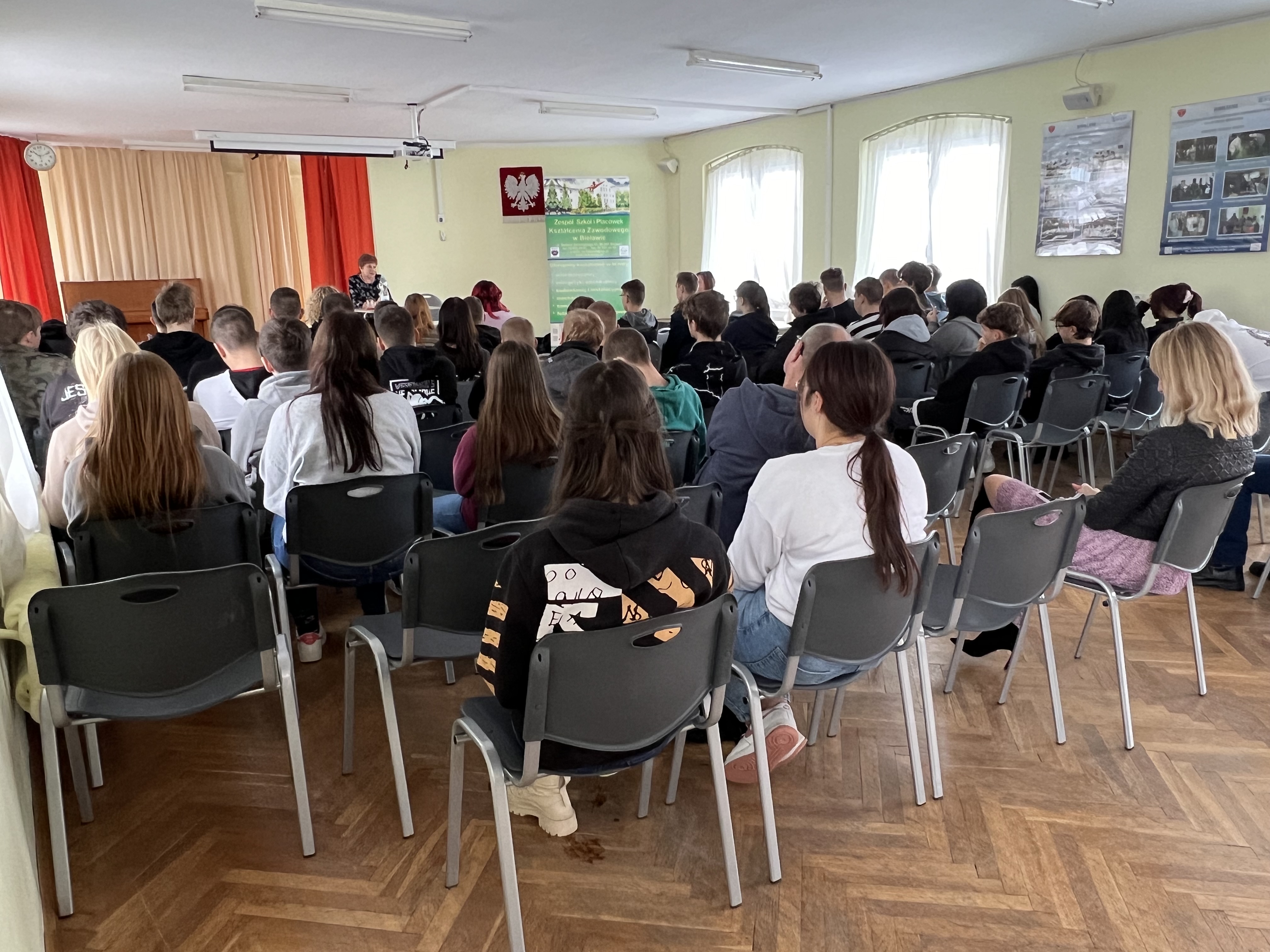 Dziś (01.12.2023 r.) obchodzimy Światowy Dzień AIDS. W związku z jego obchodami w dniu 30.11.2023 r. pracownik Powiatowej Stacji Sanitarno-Epidemiologicznej w Dzierżoniowie przeprowadził prelekcje dla uczniów klas 3 uczęszczających do Zespołu Szkół i Placówek Kształcenia Zawodowego w Bielawie.