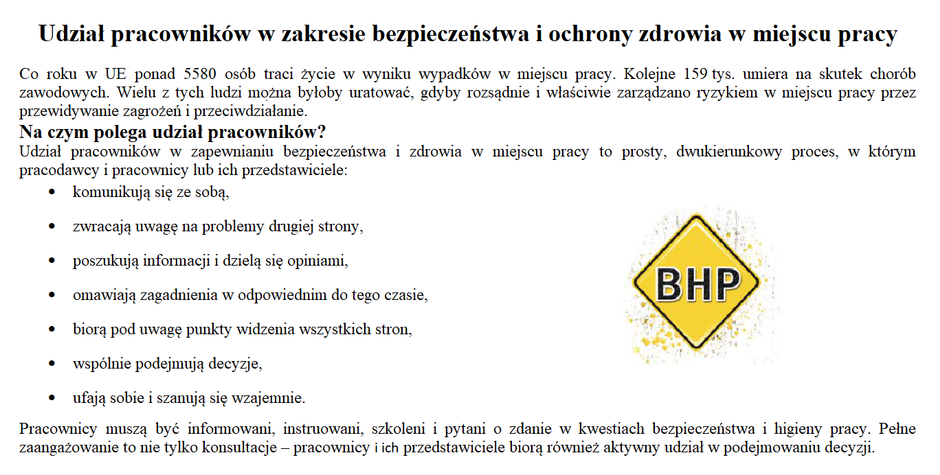 Udział pracowników w zakresie bezpieczeństwa i ochrony zdrowia w miejscu pracy Zdjęcia (2) Pokaż zdjęcie 1 z galerii. Pokaż zdjęcie 2 z galerii.