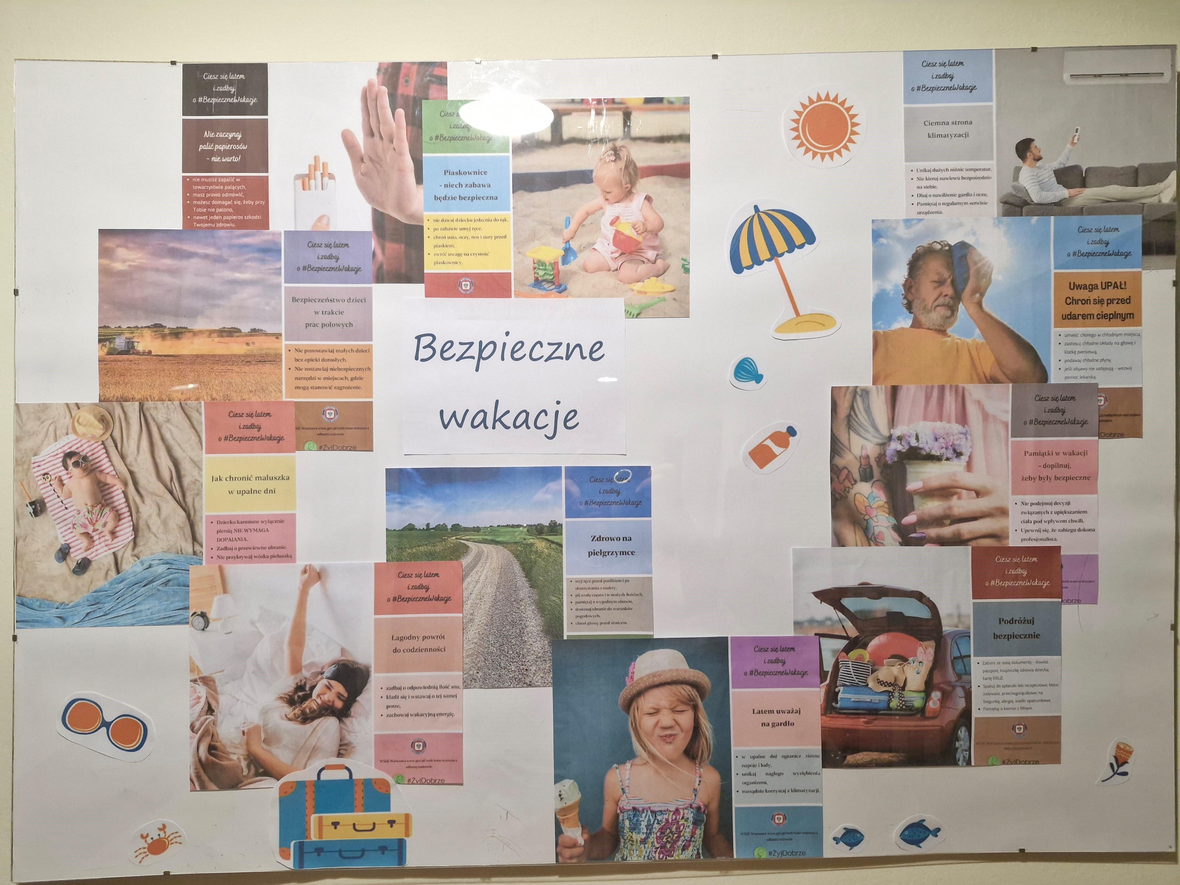 - Wykonaliśmy 4 ekspozycje wizualne „Bezpieczne wakacje” w siedzibie PSSE.