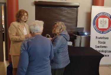 Nie zabrakło też zagadnień związanych z troską o zdrowie Seniorów. Przedstawiciele Państwowej Inspekcji Sanitarnej w Garwolinie na stoisku informacyjnym rozmawiali z Seniorami o pierwszej pomocy, bezpiecznym grzybobraniu, profilaktyce nowotworów, zdrowym stylu życia, w myśl hasła „#ŻyjDobrze”. Dla Seniorów przygotowano okolicznościowe pakiety z materiałami informacyjnymi. Wyświetlano non-stop prezentację multimedialną na wyżej wymienione tematy.