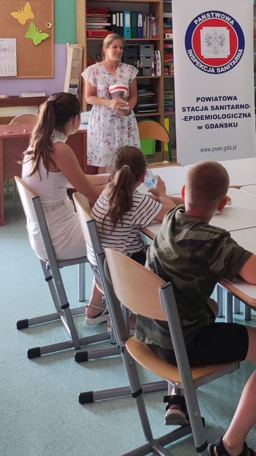 W dniu 19 sierpnia 2022r. przedstawiciel Państwowego Powiatowego Inspektora Sanitarnego w Gdańsku przeprowadził akcję prozdrowotną pt.: „Bezpieczne Lato 2022” na turnusie wypoczynku zorganizowanym w Szkole Podstawowej nr 57 przy ul. Aksamitnej 8 w Gdańsku.