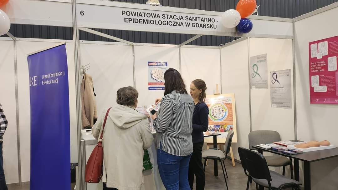 W dniu 19.10.2023r. zorganizowano stoisko edukacyjno-informacyjne podczas „Festiwalu Pracy i Aktywności Seniorów” przy ulicy Żaglowej 11 w Gdańsku. Uczestnicy wydarzenia mogli skorzystać z bezpłatnego pomiaru ciśnienia tętniczego krwi oraz instruktażu samobadania piersi przeprowadzonego przy użyciu fantomu. W bezpłatnym punkcie informacyjnym prowadzono dystrybucję materiałów oświatowo-zdrowotnych oraz edukację prozdrowotną m.in. w zakresie: