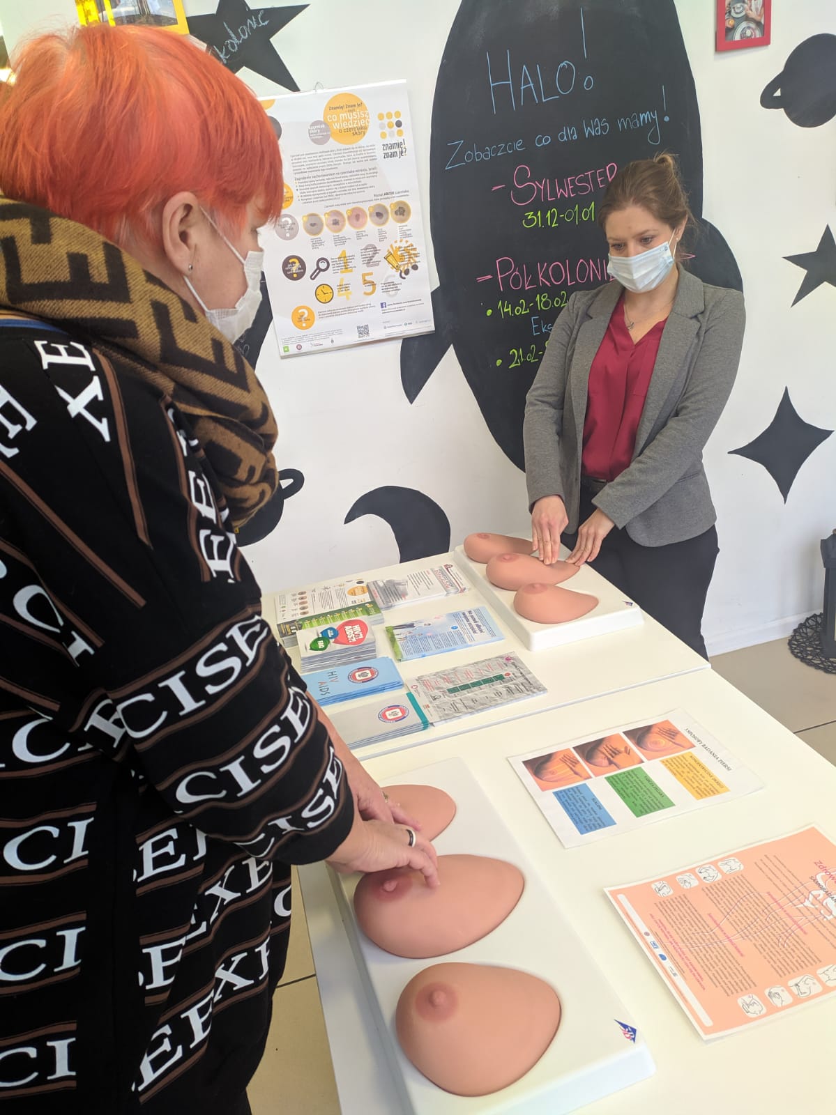 za pomocą fantomu oraz profilaktykę raka skóry, w tym przedstawienie algorytmu ABCDE czerniaka skóry. W ramach obchodów Światowego Dnia AIDS omówiono najważniejsze informacje nt. minimalizowania ryzyka zakażenia HIV. Dodatkowo pozostawiono materiały edukacyjne dla uczestników dot. AIDS/HIV, substancji psychoaktywnych, dróg zakażenia WZW A i B, gruźlicy, grypy oraz czerniaka skóry.
