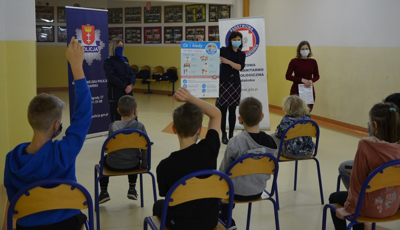 Ponadto wspólnie z przedstawicielami Komendy Miejskiej Policji przeprowadzono dla dzieci uczestniczących w 2 turnusach półkolonii akcje edukacyjno – informacyjne pod hasłem: „Bezpieczne ferie 2021”. Na spotkaniach poruszono tematy związane z bezpiecznym zachowaniem się w czasie wypoczynku oraz omówiono zasady higieny. Uczestnicy chętnie odpowiadali na pytania i aktywnie angażowali się podczas instruktażu mycia rąk.