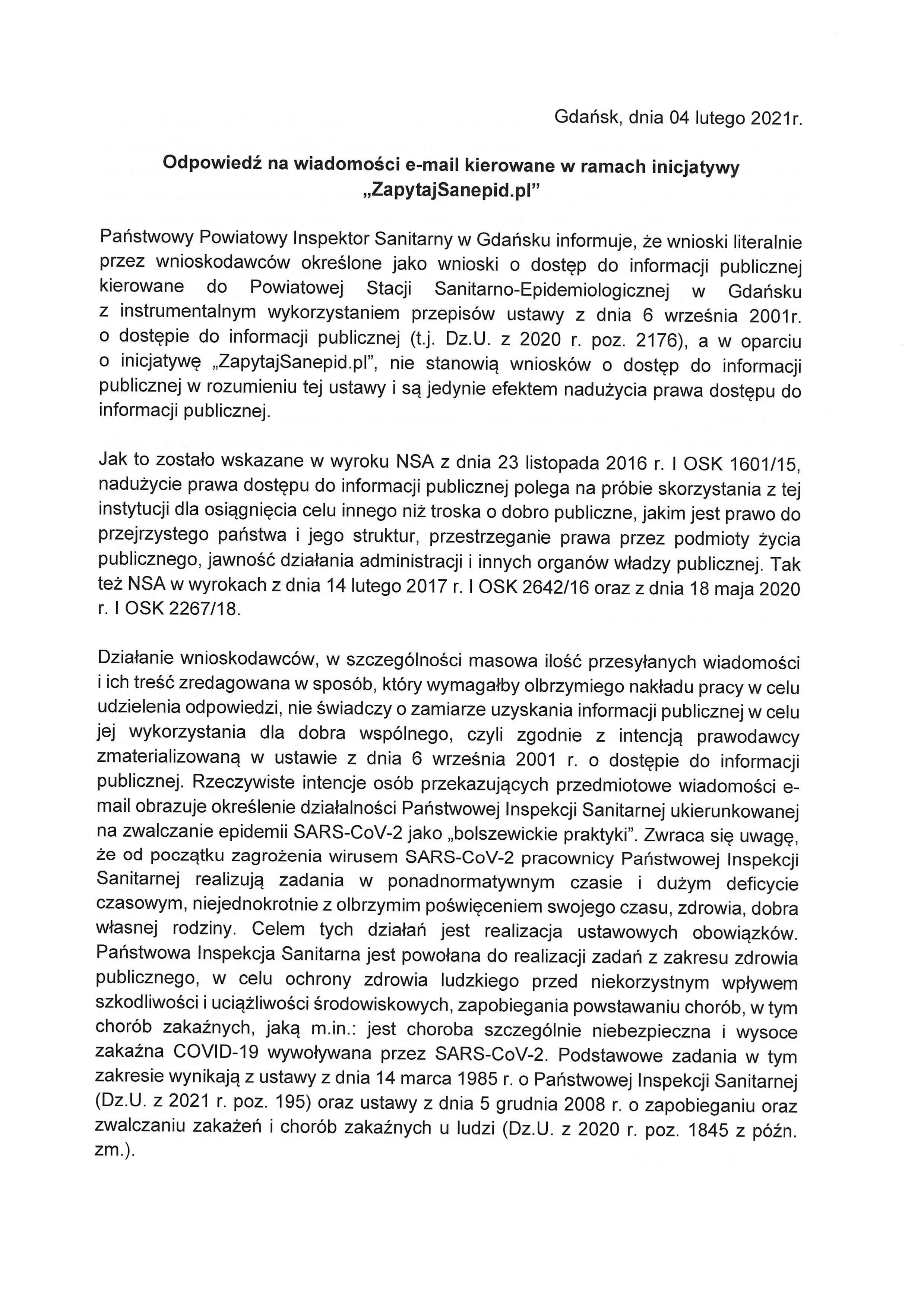 Odpowiedź na wiadomości e-mail kierowane w ramach inicjatywy ,,ZapytajSanepid.pl" 04.02.2021 Materiały ODPOWIEDŹ NA WIADOMOŚCI E-MAIL KIEROWANE W RAMACH INICJATYWY ,,ZAPYTAJSANEPID.PL" odpowiedź.pdf 4.16MB Zdjęcia (5) Pokaż poprzednie zdjęcia Pokaż zdjęcie 1 z galerii. Pokaż zdjęcie 2 z galerii. Pokaż zdjęcie 3 z galerii. Pokaż zdjęcie 4 z galerii. Pokaż zdjęcie 5 z galerii. Pokaż nestępne zdjęcia