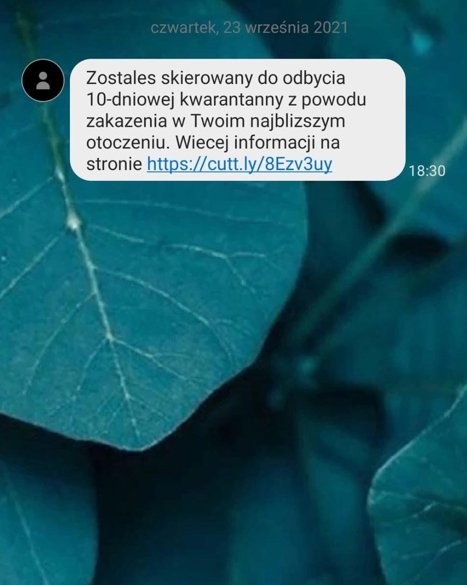 Pomorski Państwowy Wojewódzki Inspektor Sanitarny oraz Państwowy Powiatowy Inspektor Sanitarny w Gdyni ostrzega: mieszkańcy Pomorza i całej Polski otrzymują wiadomość sms o nałożeniu kwarantanny. W treści podany jest link/adres do strony. To jest oszustwo! Może to być próba wyłudzenia danych lub inne niebezpieczne działanie dotyczące Państwa danych zawartych w telefonie. Prosimy o ostrożność i nie klikanie w przesłany link!!!