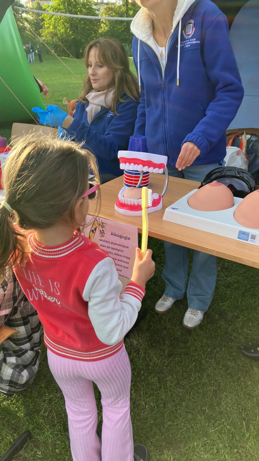 Dzieci z chęcią przysłuchiwały się jak prawidłowo należy myć zęby. Mogły również same poćwiczyć mycie na modelu szczęki za pomocą zabawnej, dużej szczotki.