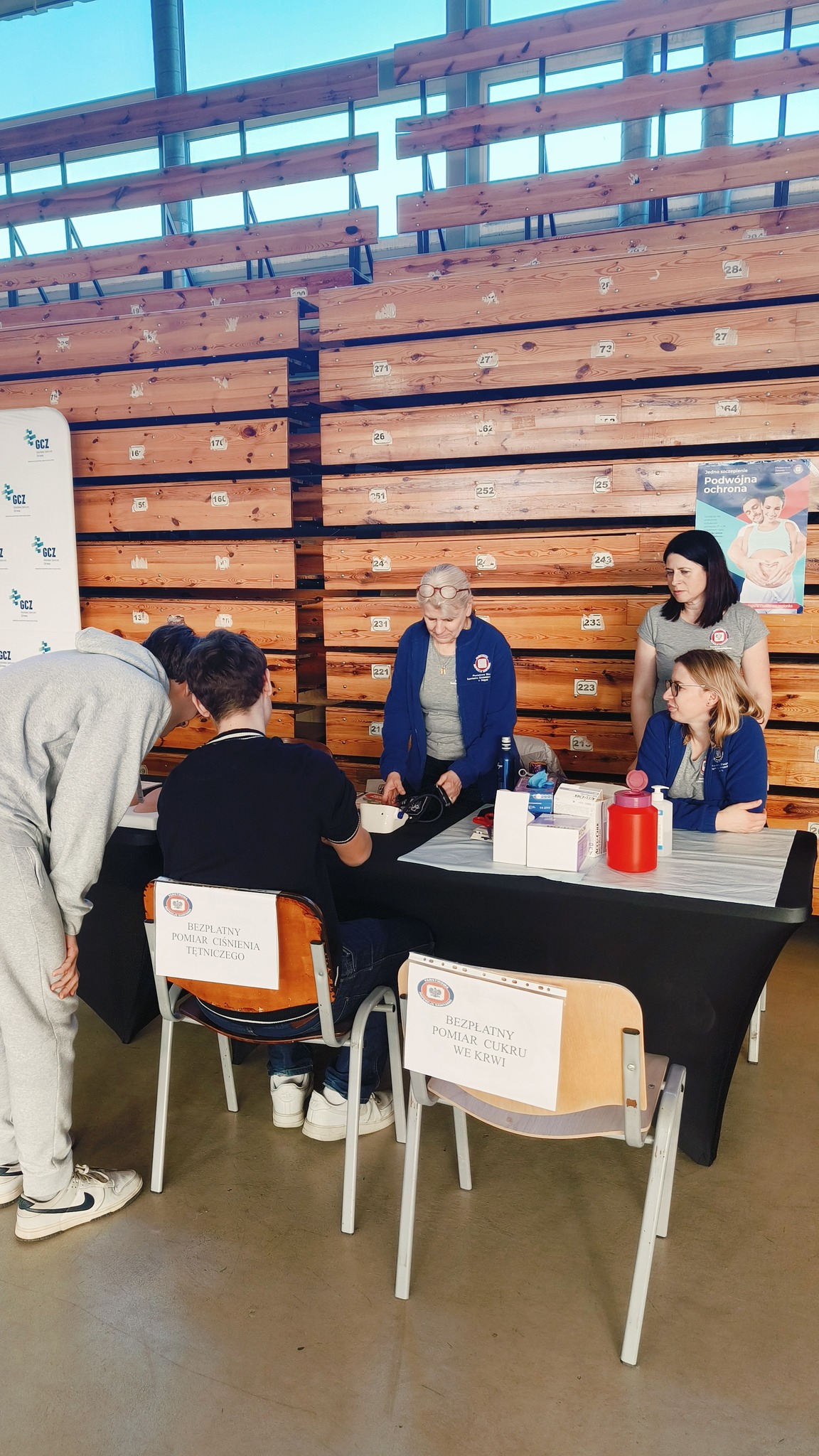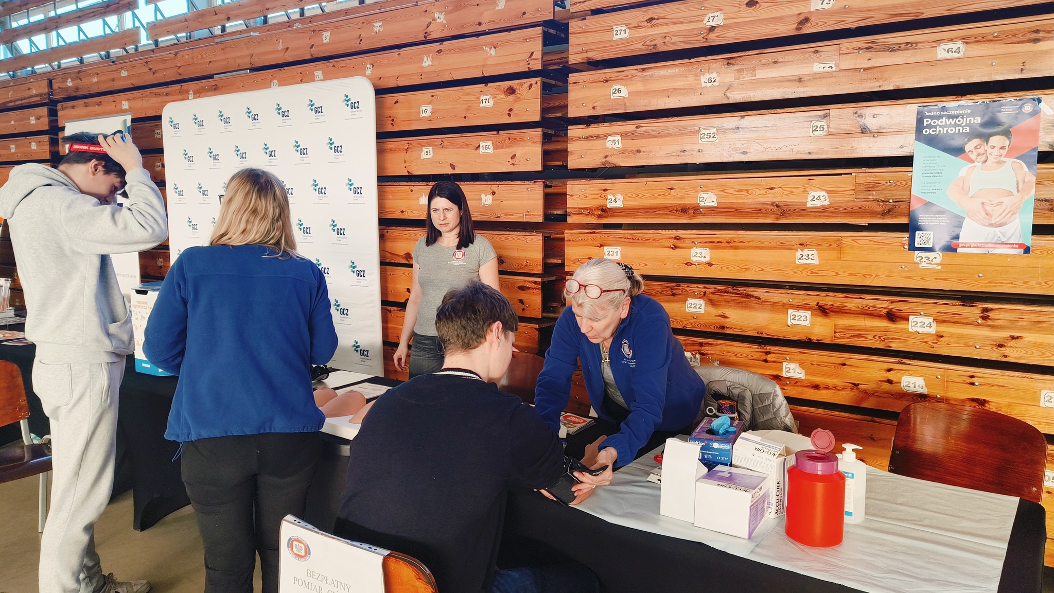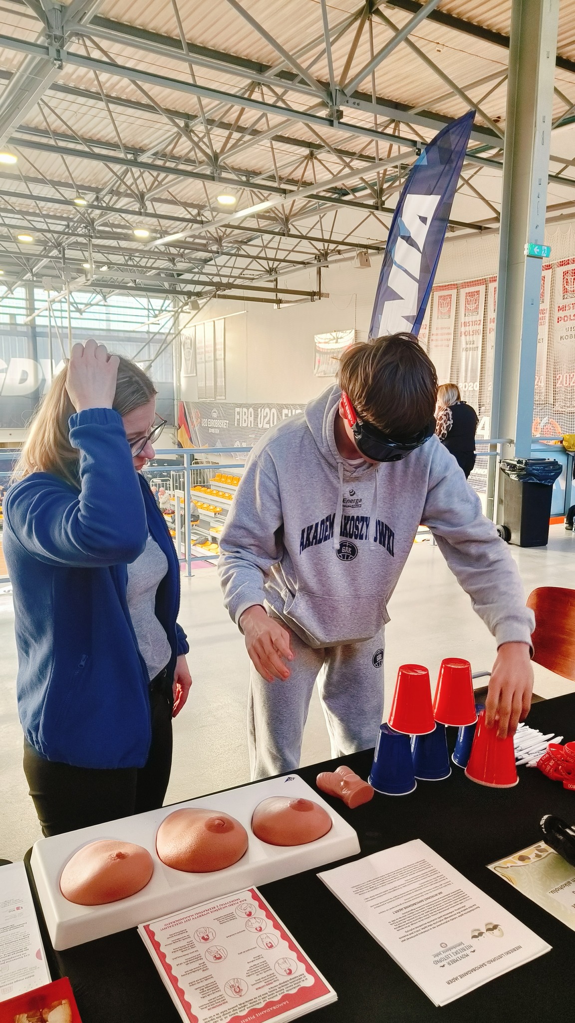 22 marca 2025 r. w Gdyńskim Centrum Sportu odbyły się finały Mistrzostw Polski U19 mężczyzn w koszykówce. Pracownicy Stacji Sanitarno - Epidemiologicznej w Gdyni przygotowali specjalne stanowisko zdrowotno - profilaktyczne. Była to doskonała okazja, by zmierzyć sobie poziom cukru we krwi, ciśnienie tętnicze oraz skorzystać z instruktaży: prawidłowego mycia rąk, samobadania piersi i jąder na fantomach. Sporo osób wypróbowało także alkogogle, czyli okulary symulujące stan po spożyciu alkoholu. Każdy chętny otrzymał materiały dotyczące szczepień ochronnych, profilaktyki nowotworowej, HIV /AIDS, oraz profilaktyki uzależnień. Było to kolejne wydarzenie, gdzie sport łączy się ze zdrowiem. Dziękujemy wszystkim odwiedzającym za zainteresowanie i zapraszamy na nasze kolejne akcje.