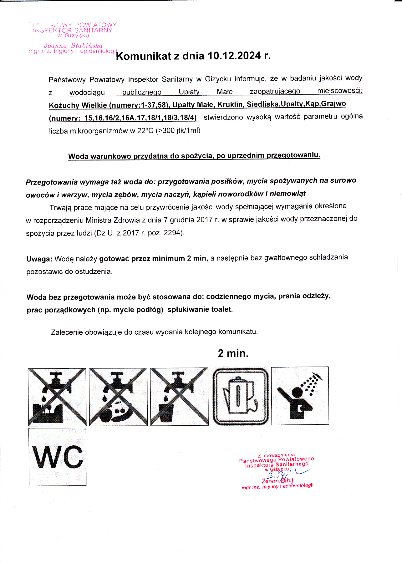 Komunikat z dnia 10.12.2024 r. (dot. wodociągu publicznego Upałty Małe)