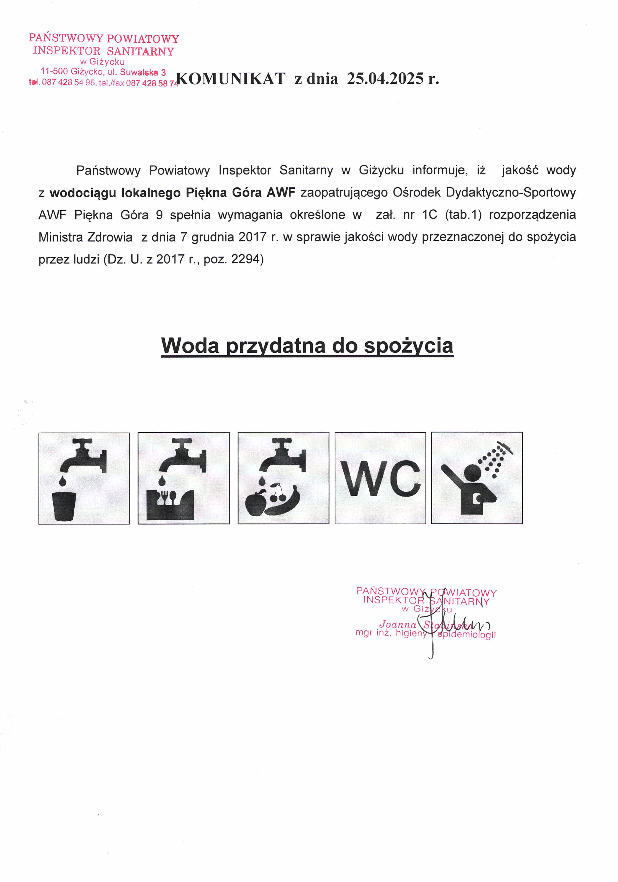 Komunikat z dnia 25.04.2025 r. (dot. wodociągu lokalnego Piękna Góra AWF)